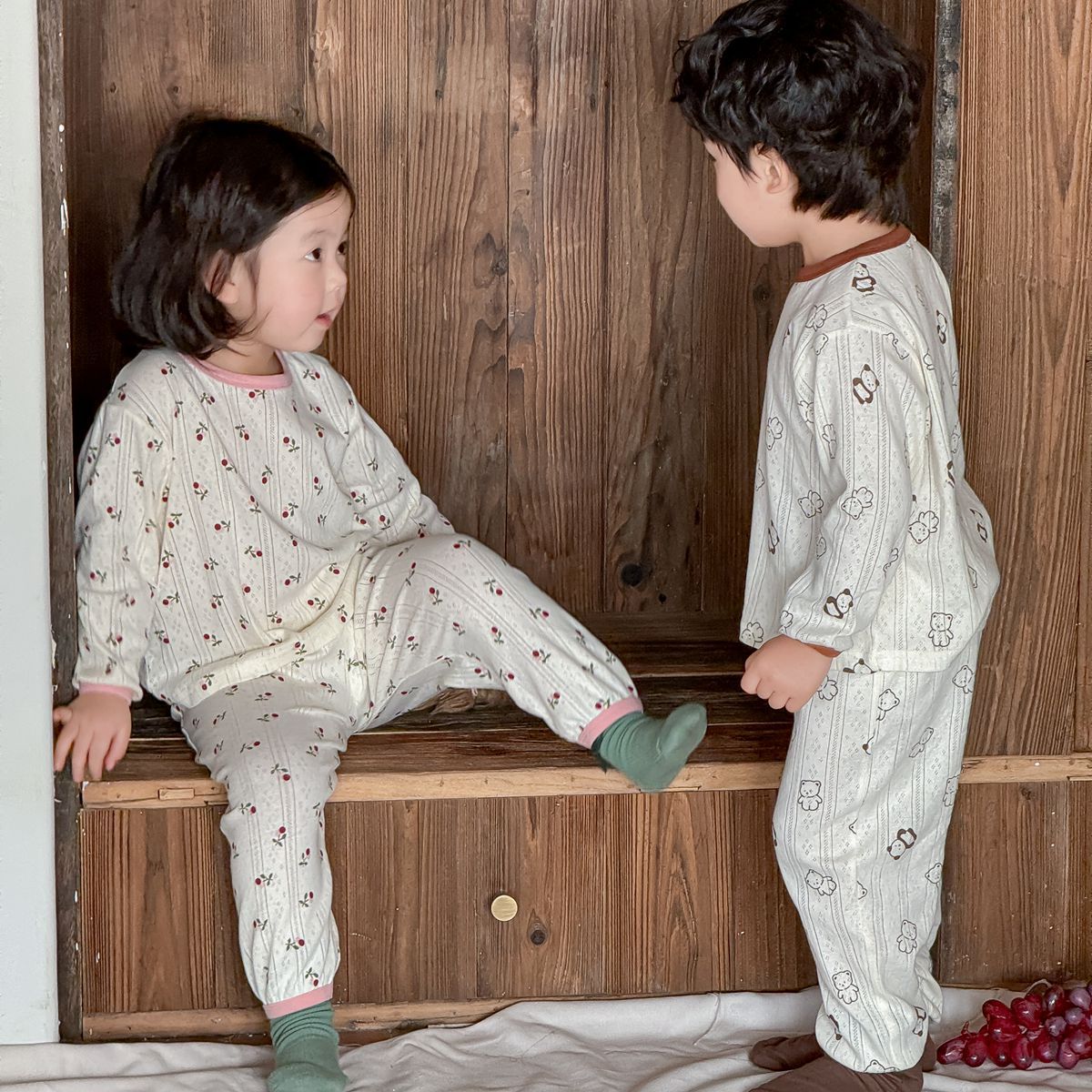 可儿妈~儿童睡衣A类全棉春夏季薄款网眼呼吸棉男女童家居服套装