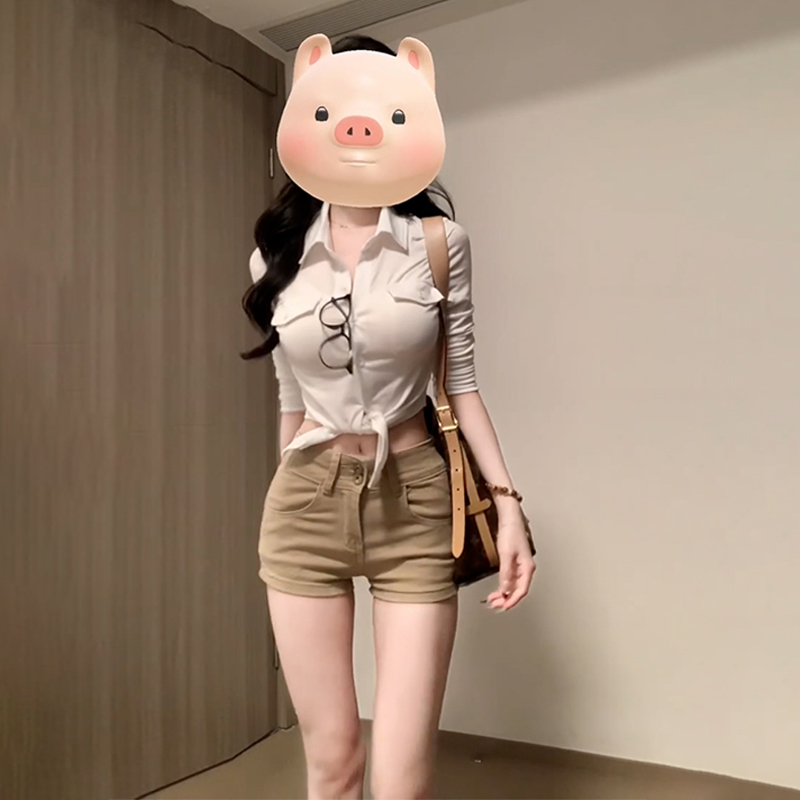 性感辣妹白色衬衫女夏2025年新款设计感小众短款上衣修身气质衬衣
