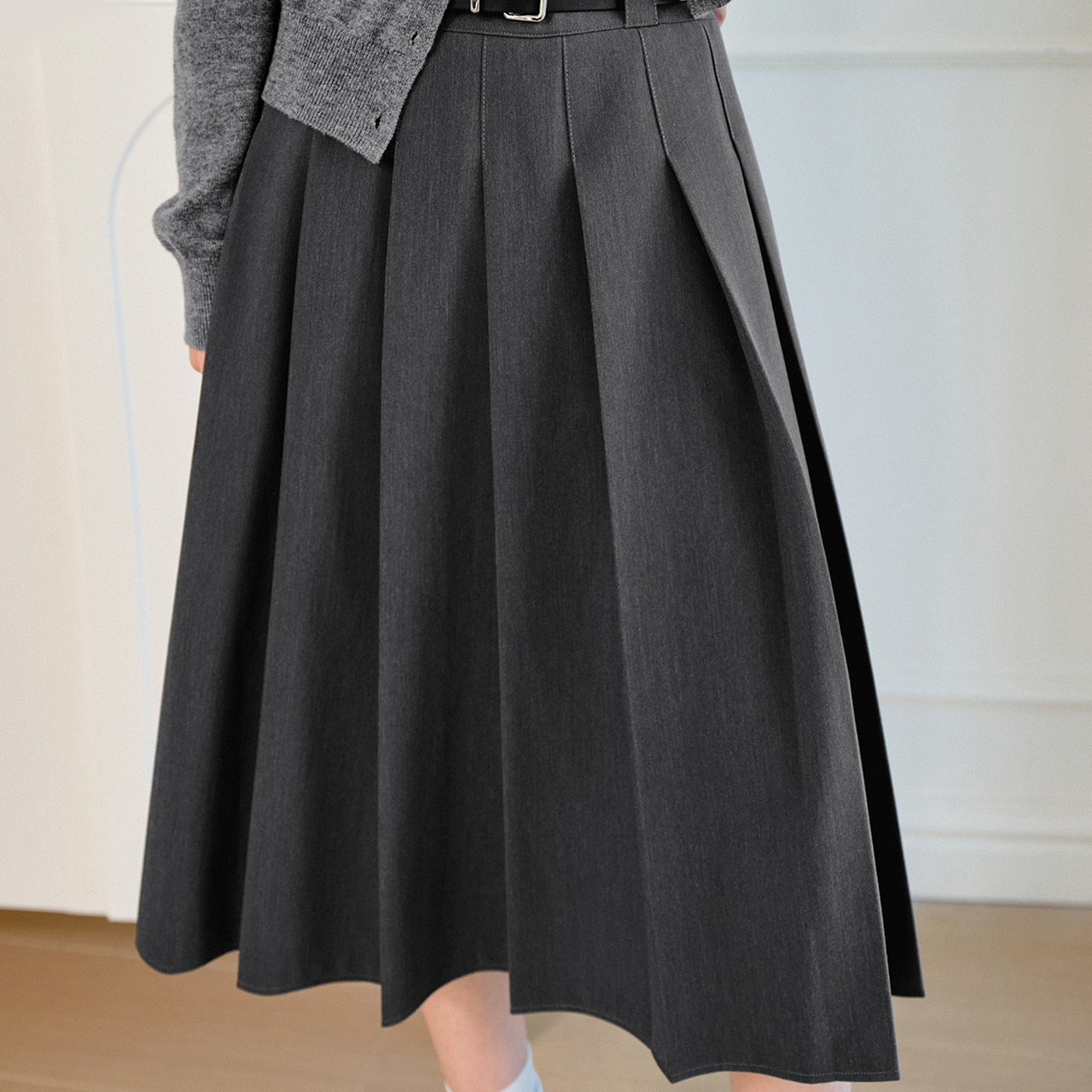 诗凡黎学院风JK裙黑色高腰显瘦A字半身裙百褶裙女伊芙丽outlets店