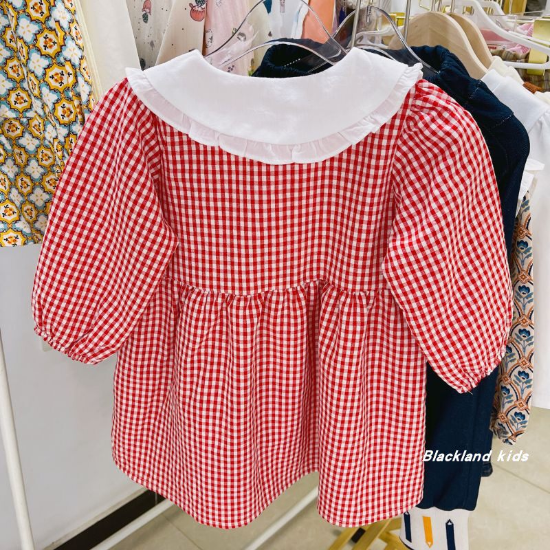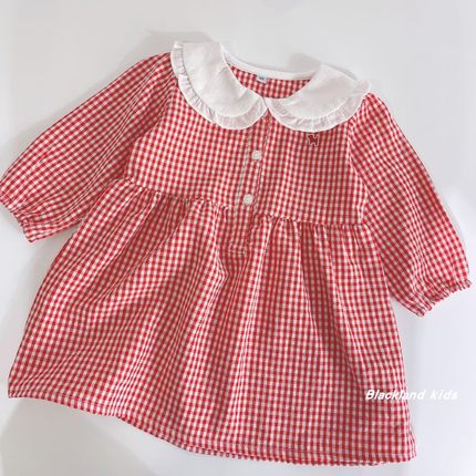 90-150码 春秋款韩版童装女童红格子连衣裙 宝宝儿童公主裙A裙