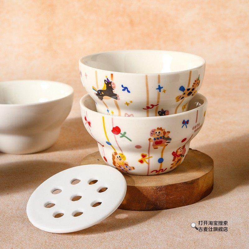 新款可爱马陶瓷沥油碗火锅店专用碗餐饮商用沥水蒸碗单人火锅餐具
