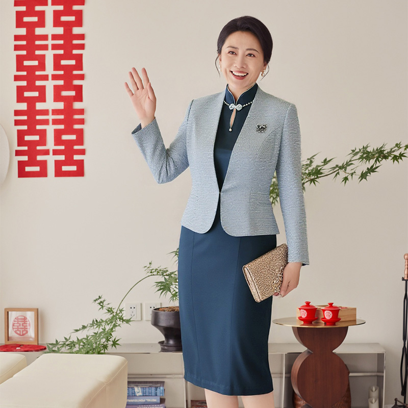 lucre妈妈婚宴礼服春秋季新品气质喜婆婆婚宴醋酸敬酒旗袍套装