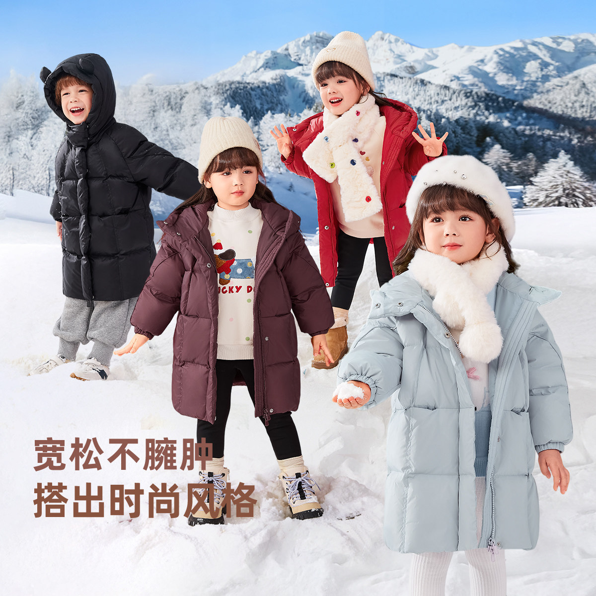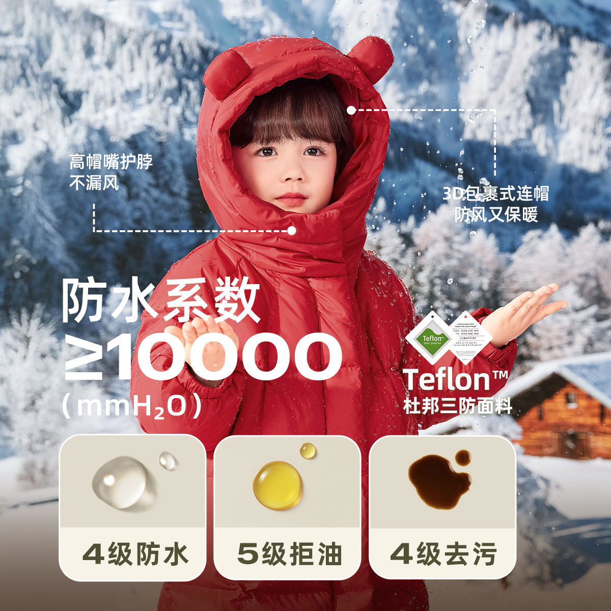 [三防蓄热]女童羽绒服冬宝宝衣服儿童加厚保暖冬装男童红色中长款