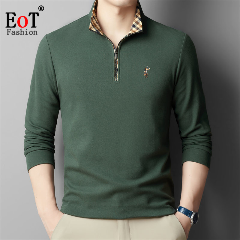 春秋中年男士纯棉长袖T恤立领半拉链宽松休闲爸爸装纯色全棉体恤
