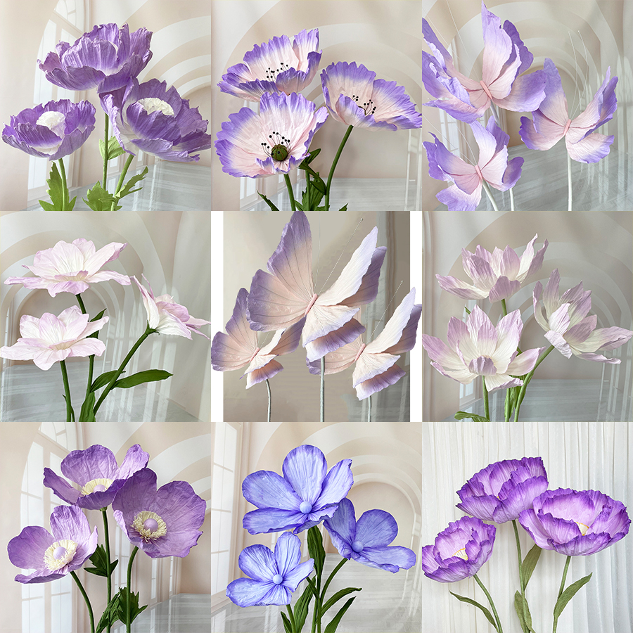 紫色橱窗美陈婚庆婚礼舞台布置巨型成品蝴蝶摄影道具仿真花纸艺