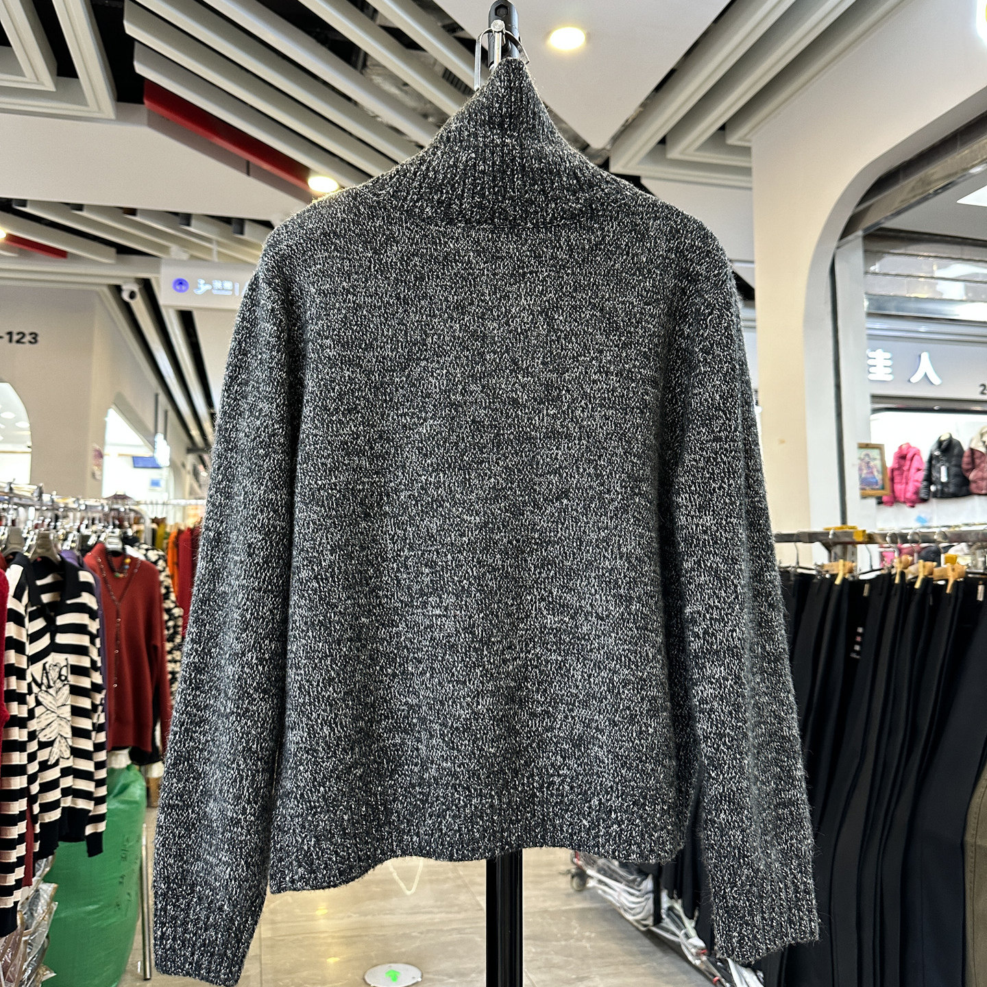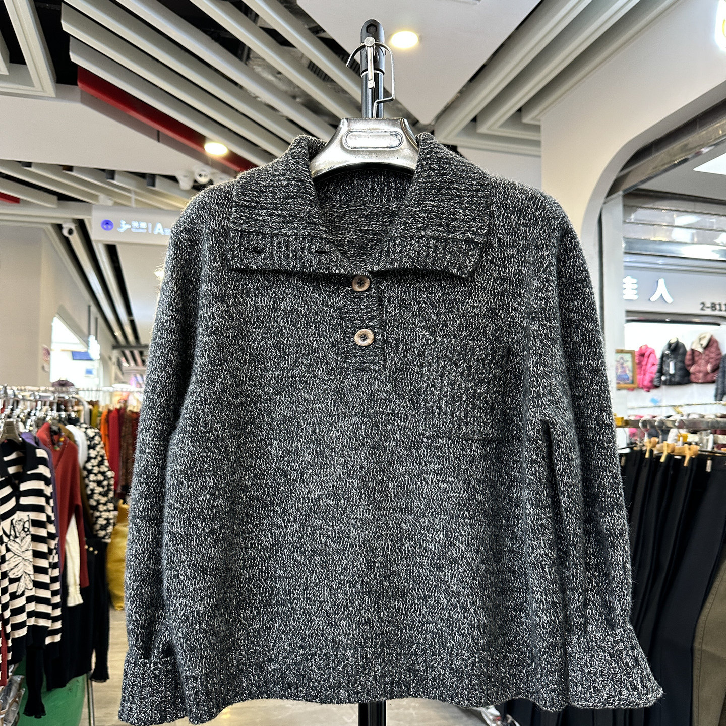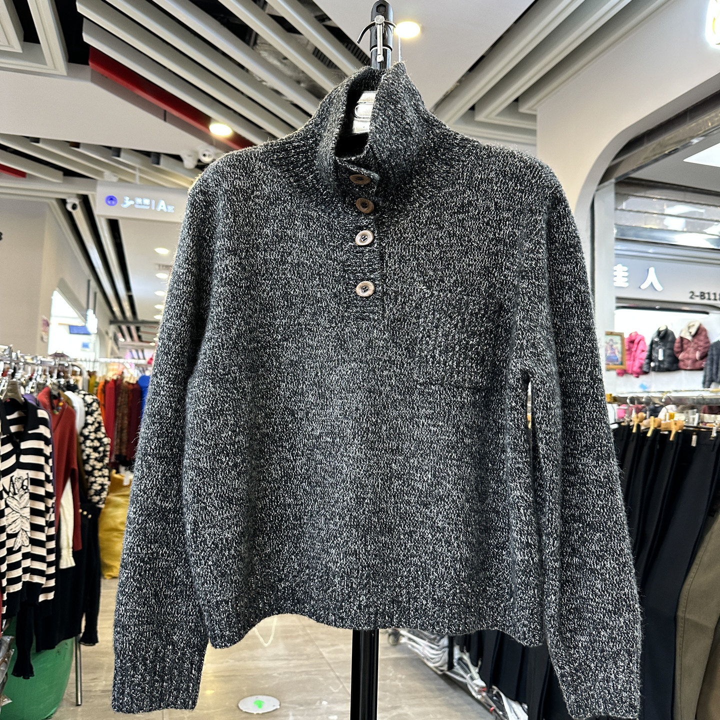断码捡漏韩版宽松高领羊毛毛衣女灰色牛角扣保暖套头针织中年妈妈
