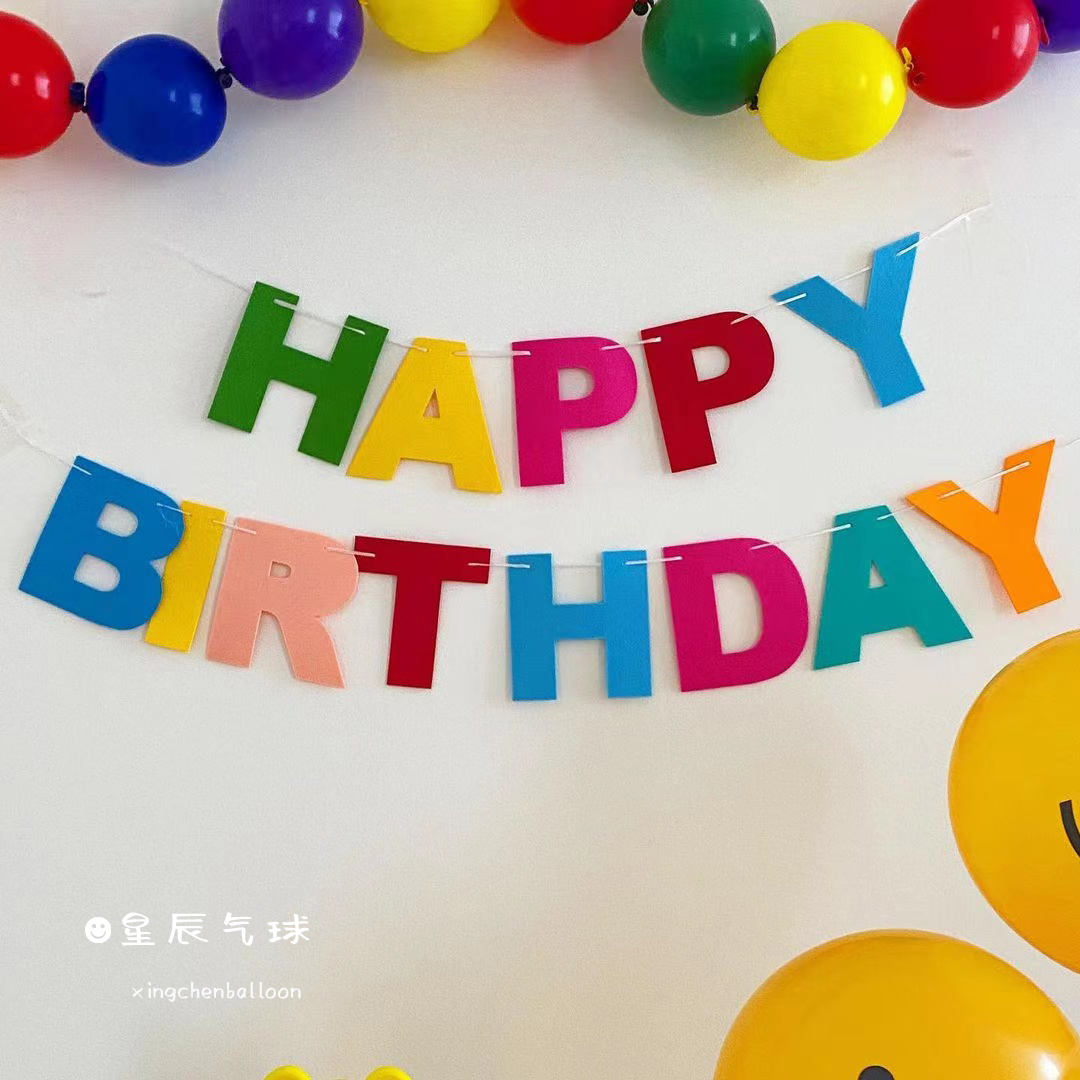 儿童生日快乐气球装饰周岁场景布置派对字母拉旗拍照道具男孩女孩