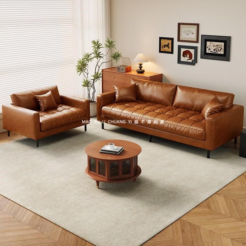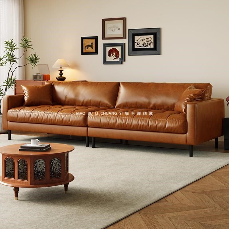 2025新款皮艺沙发现代简约w家用小户型客厅网红奶油风高脚直排沙