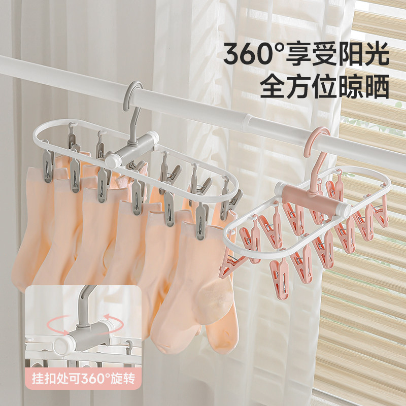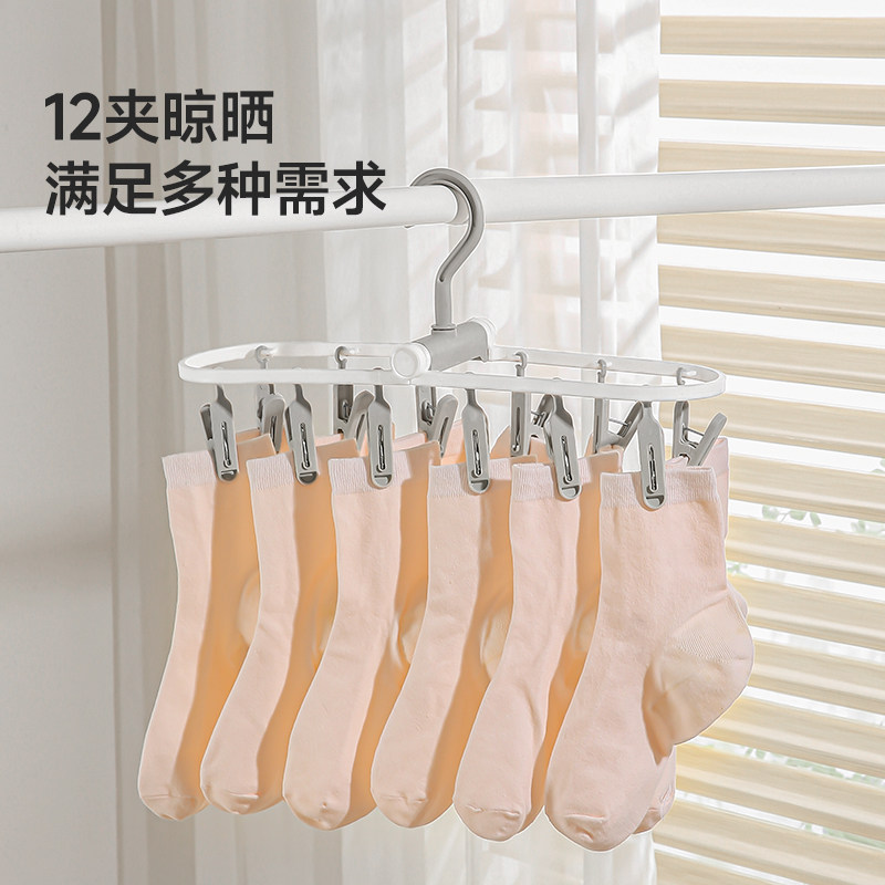 美丽雅折叠晒袜子神器塑料12夹带夹子衣架晾晒架夹子晾衣夹出差