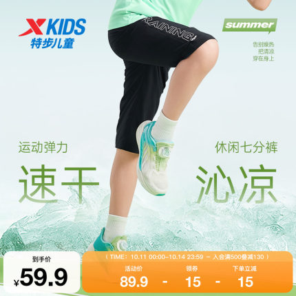 特步童装夏季款吸湿速干男女童梭织运动七分裤中大童透气凉感短裤