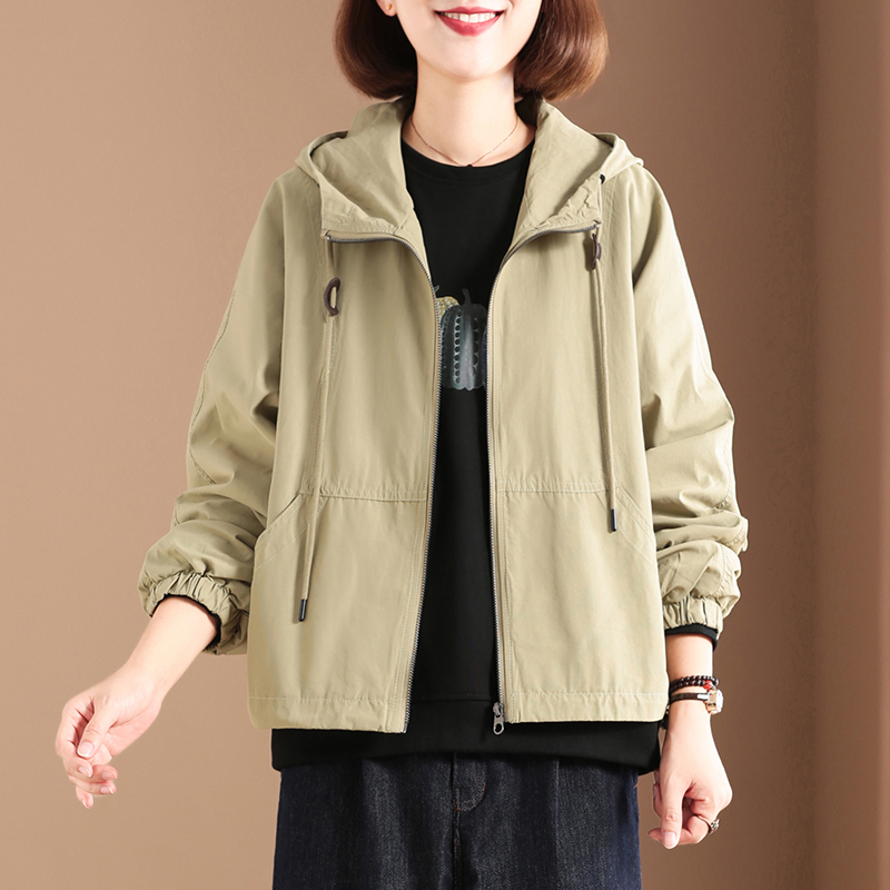 孔雀飞飞新款韩版大码遮肉连帽减龄气质复古休闲2024早秋风衣外套