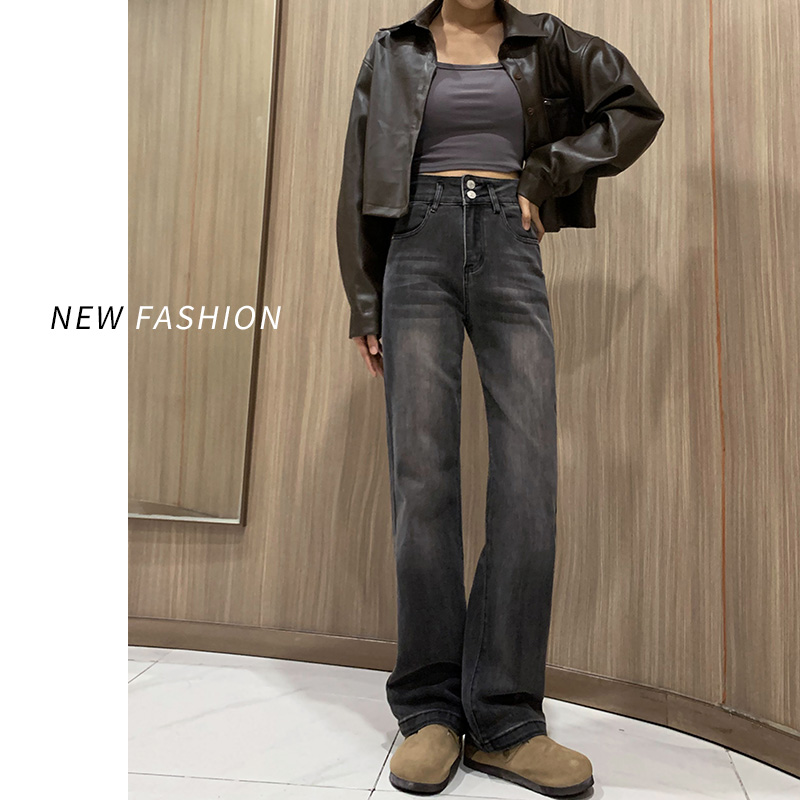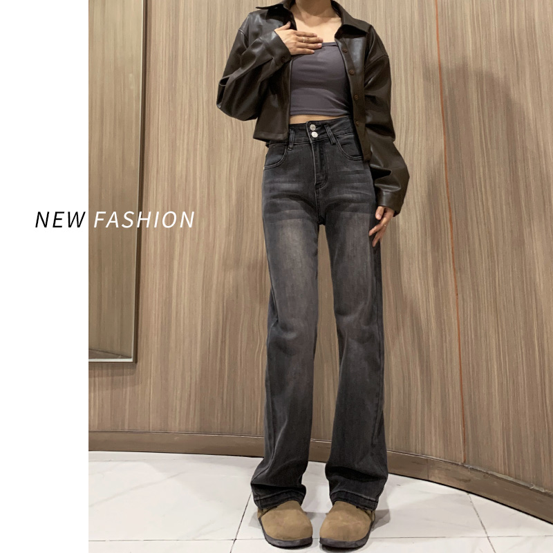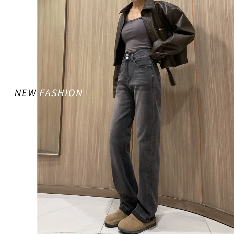 灰黑色直筒牛仔裤女春秋2025年新