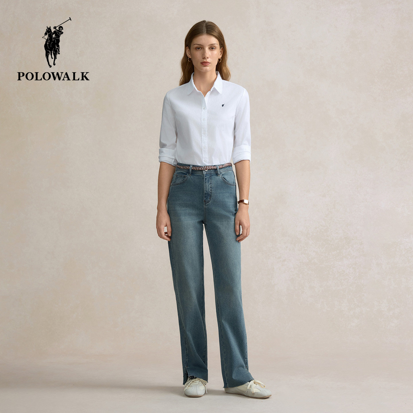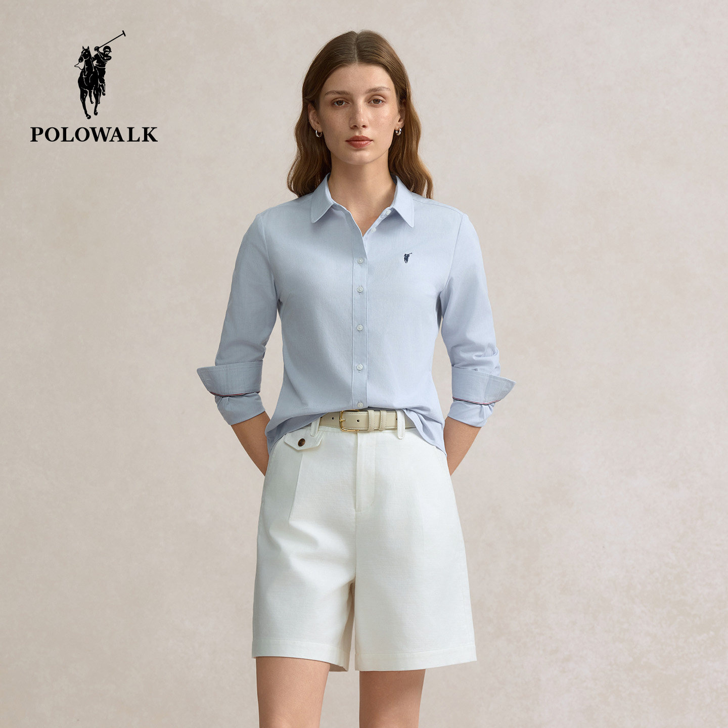 POLOWALK女士纯棉衬衫白色