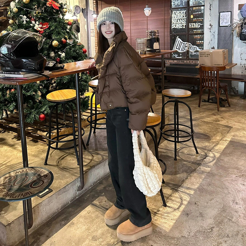 美式潮牌短款立领羽绒棉袄女2025冬季新款小个子复古洋气棉服棉衣