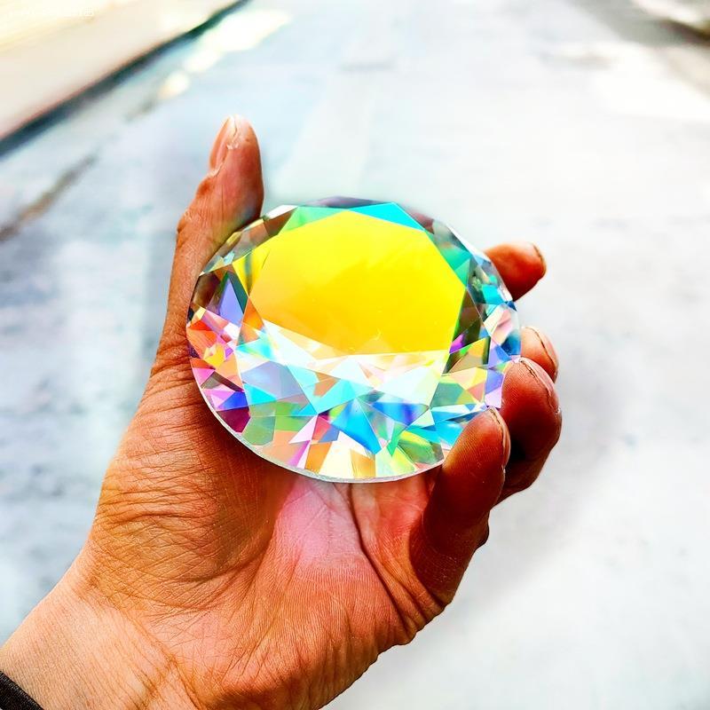 大号炫彩水晶玻璃钻石摆件七彩宝石玩具折射彩虹制造家居装饰8cm