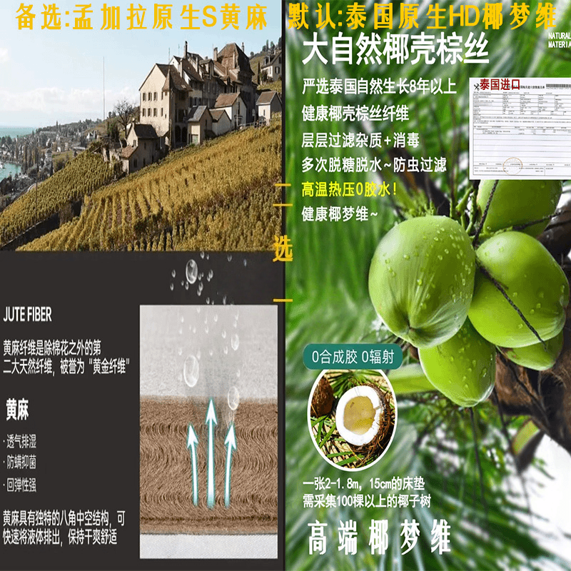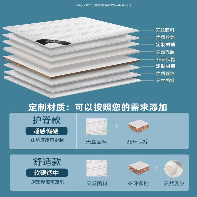 天然乳胶椰棕3E棕榈黄麻床垫可拆洗透气1.5米1.8米席梦思可定制