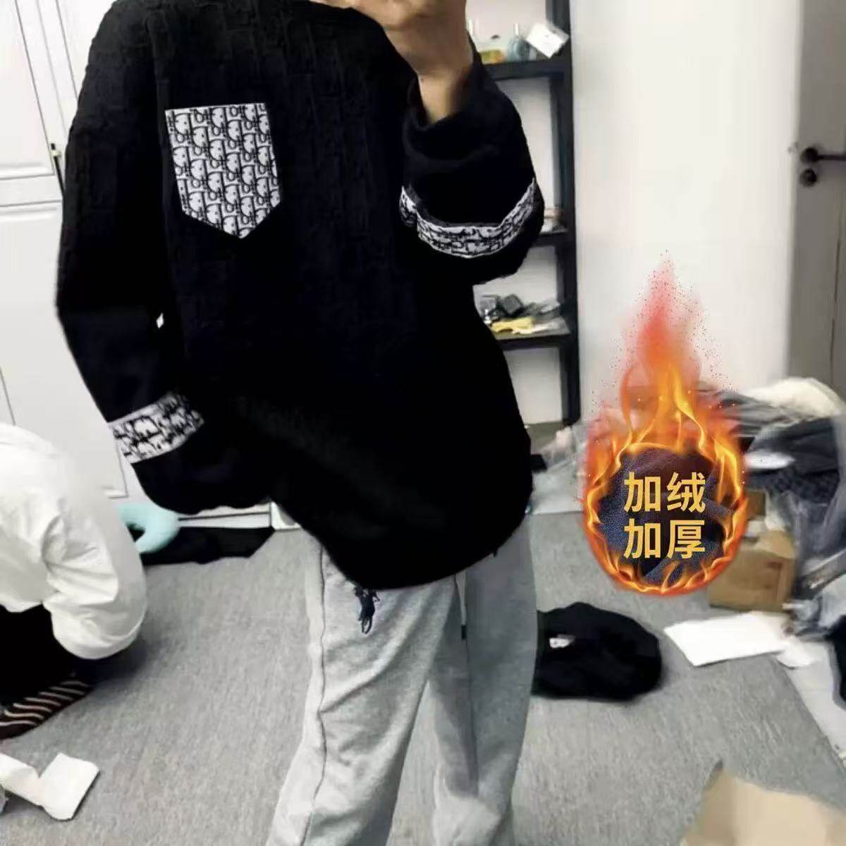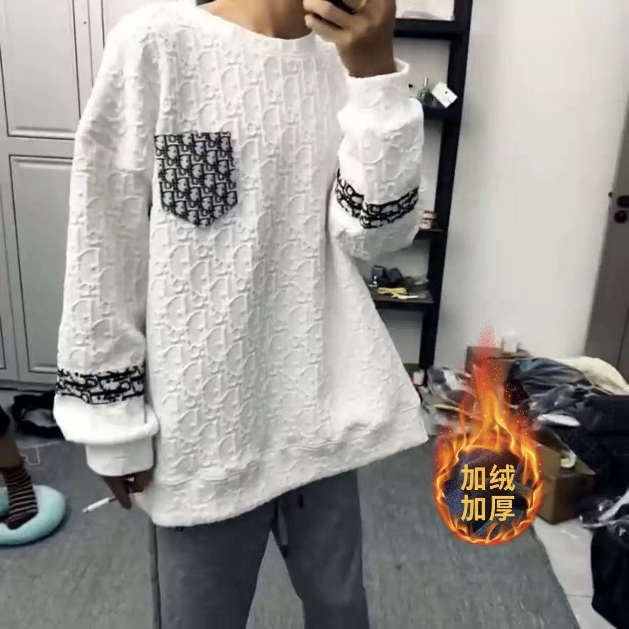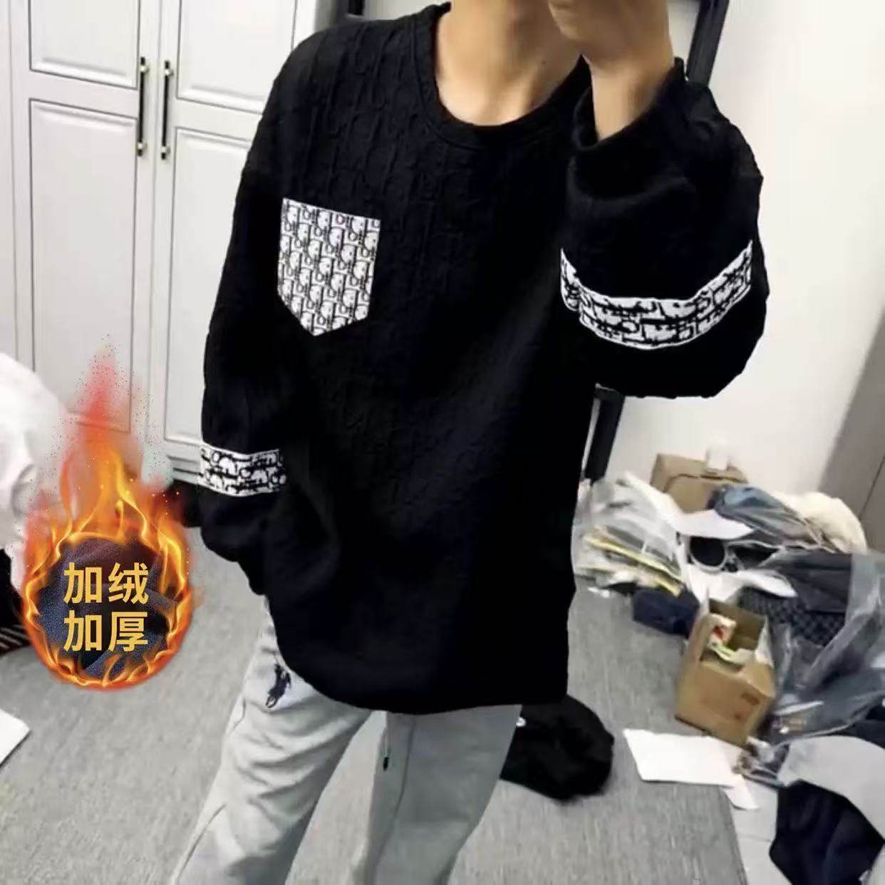 潮牌街头外穿卫衣男生春秋季潮流百搭圆领宽松港风口袋拼接长袖