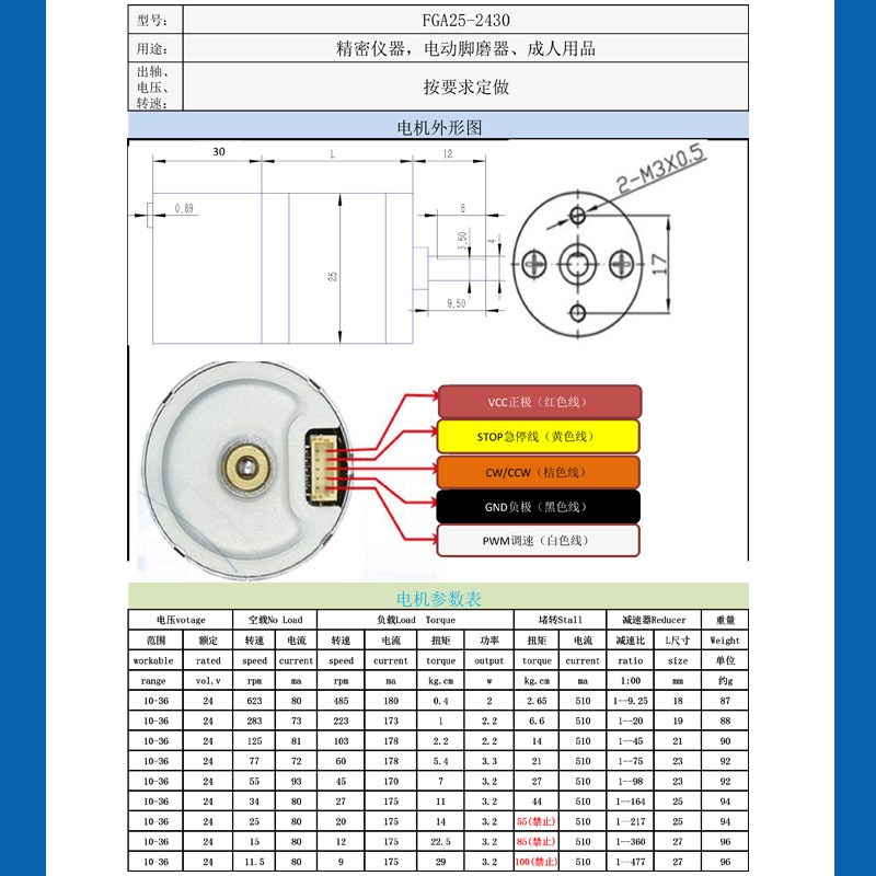 25-2430微型直流电机24V齿轮减速调速无刷电机马达风扇配件