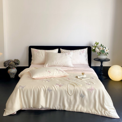 莱赛尔天丝四件套高奢蝴蝶刺绣丝滑裸睡被套床单1.8m亲肤