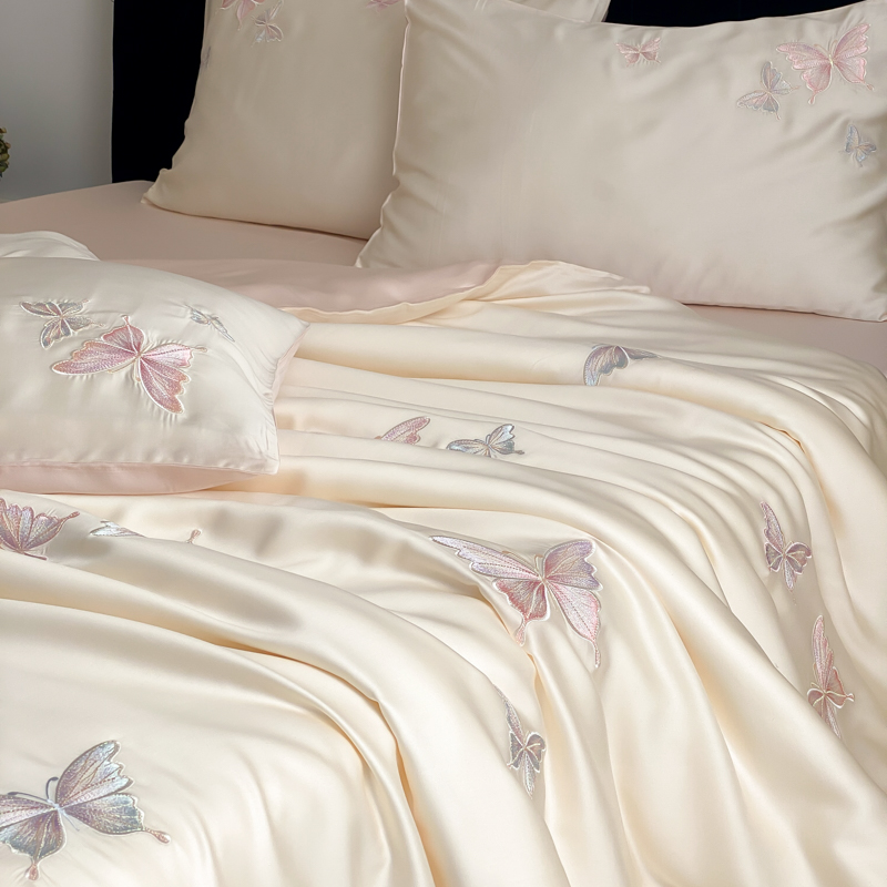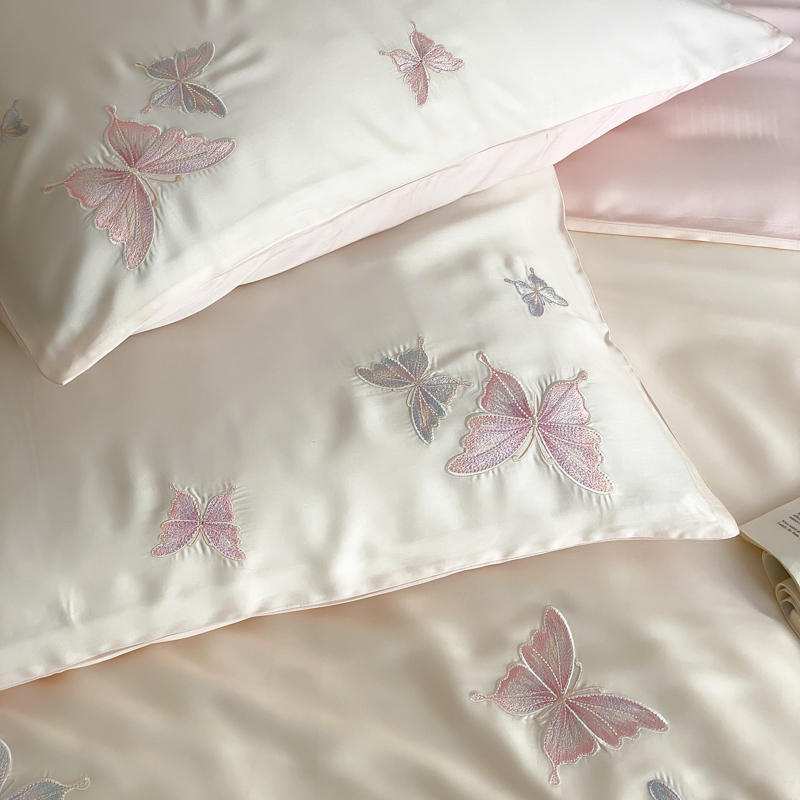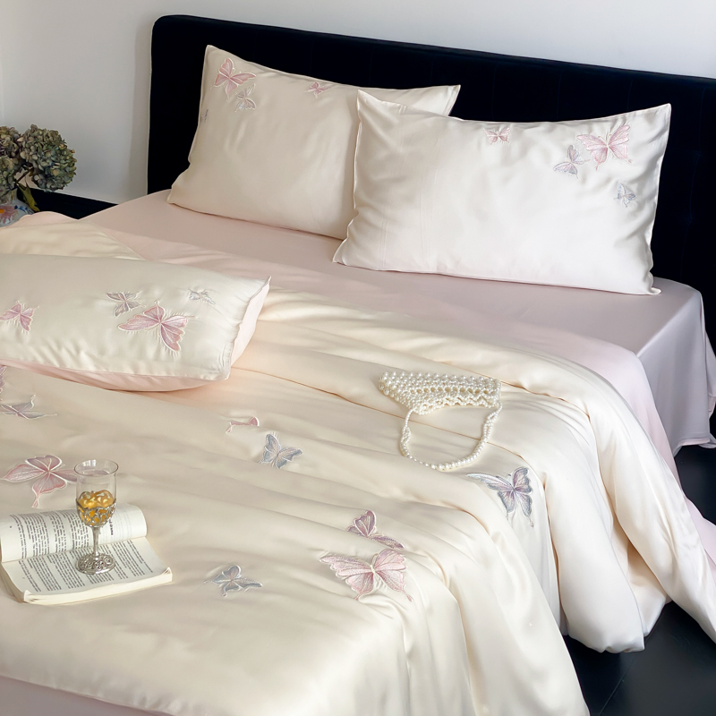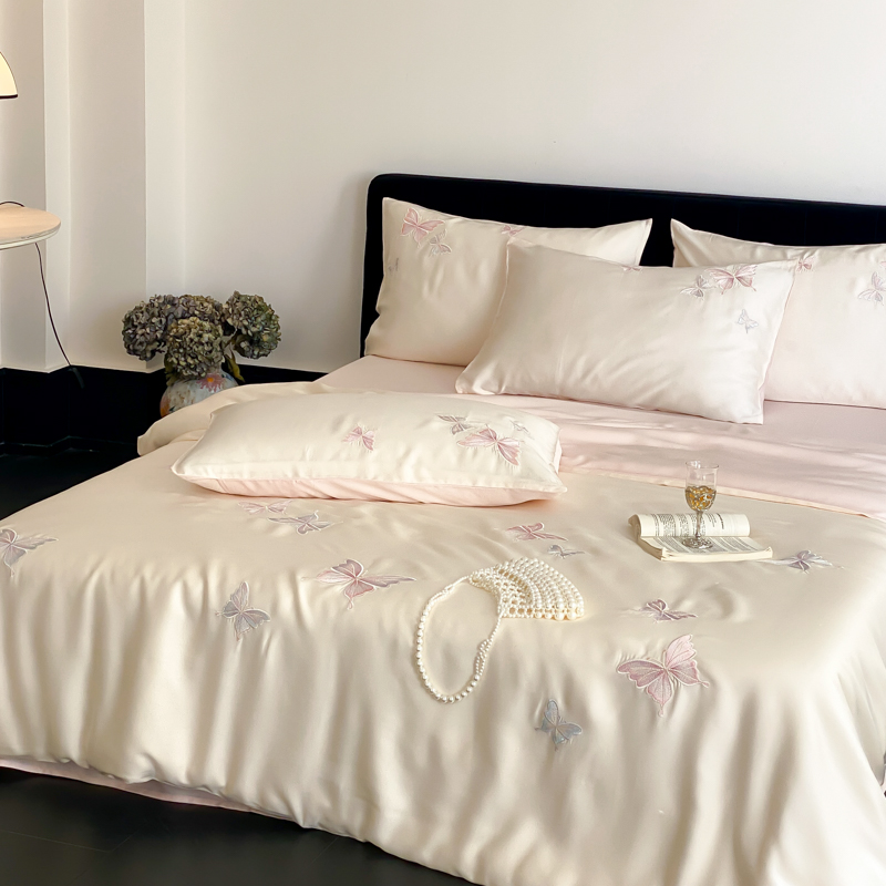莱赛尔天丝四件套高奢蝴蝶刺绣