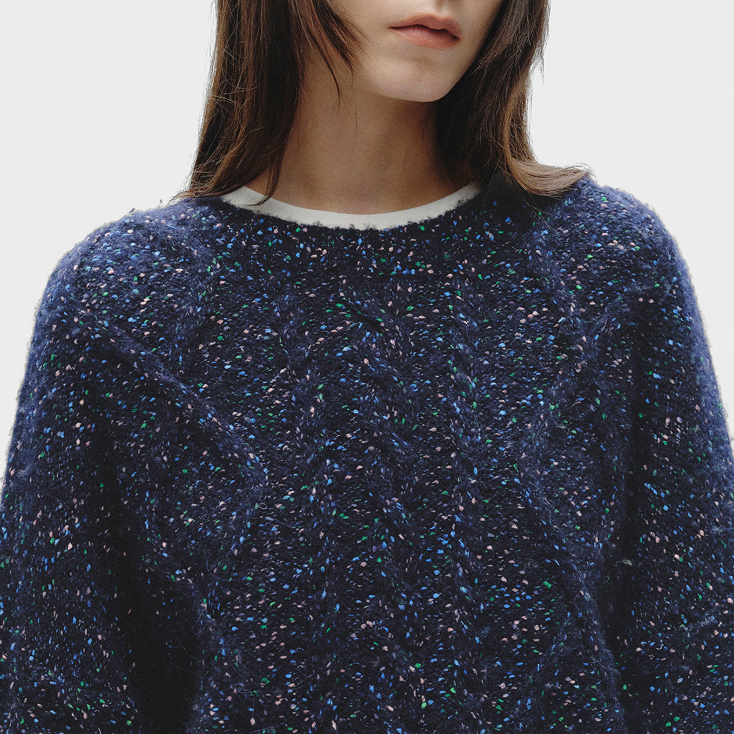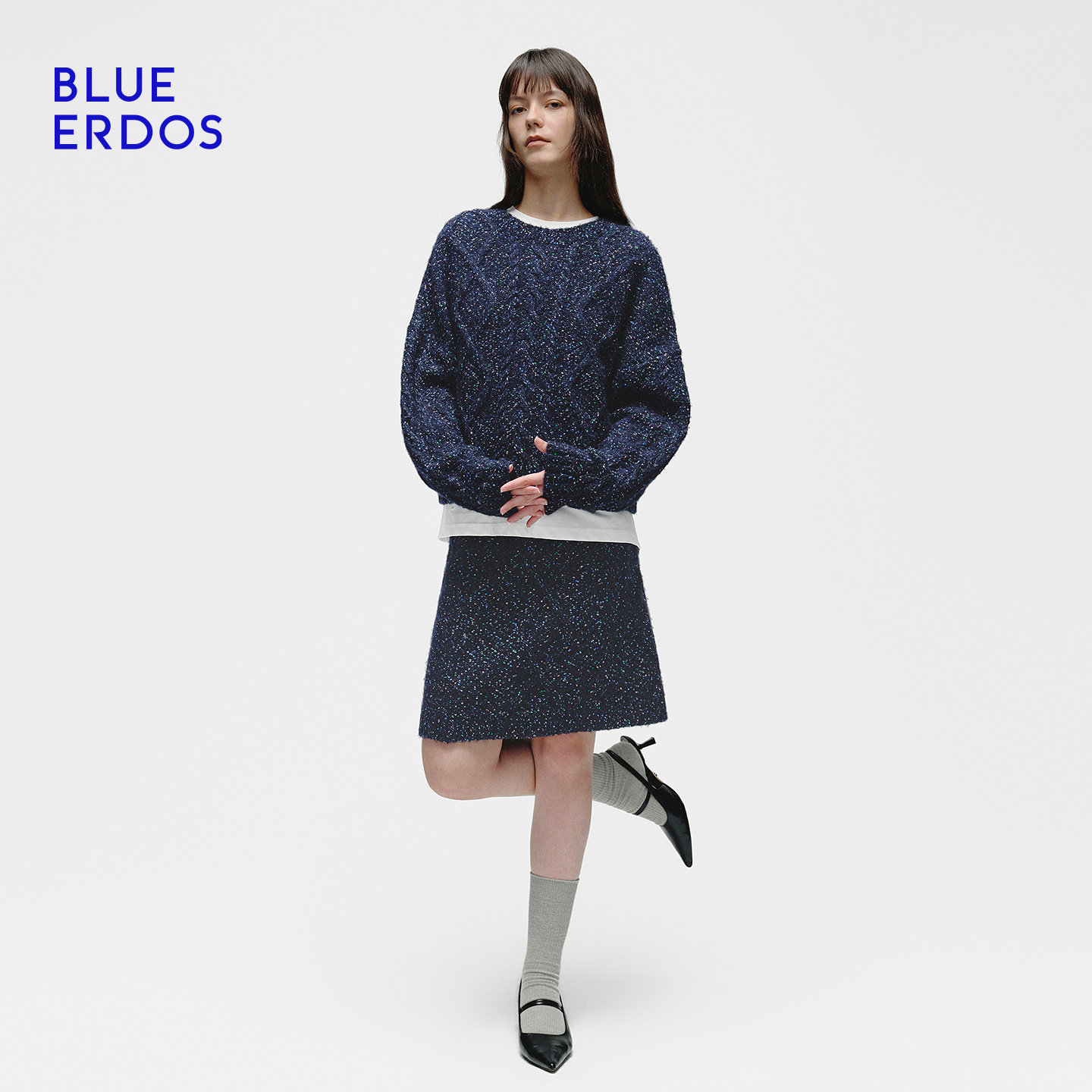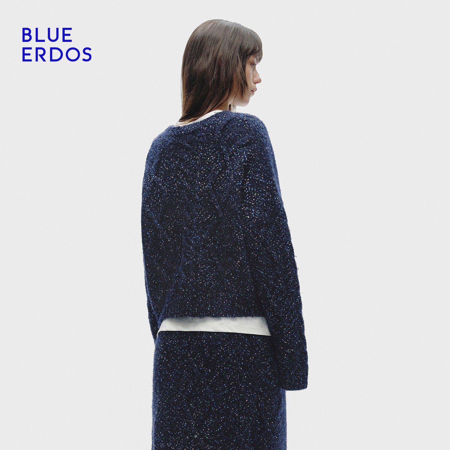 BLUE ERDOS冬季新品质感通勤羊毛混纺花式纱圆领亮丝针织衫女