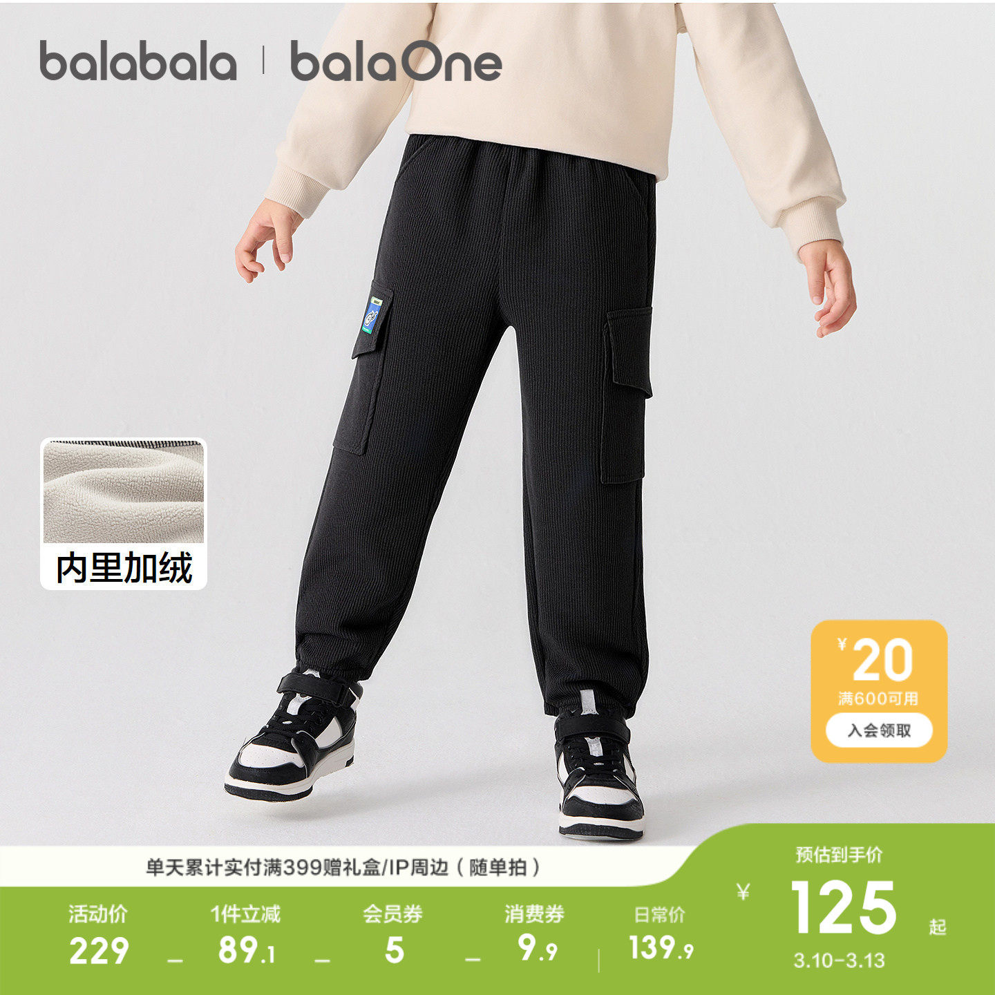 【balaOne】巴拉巴拉童装儿童裤子男童加绒长裤2026冬装休闲工装