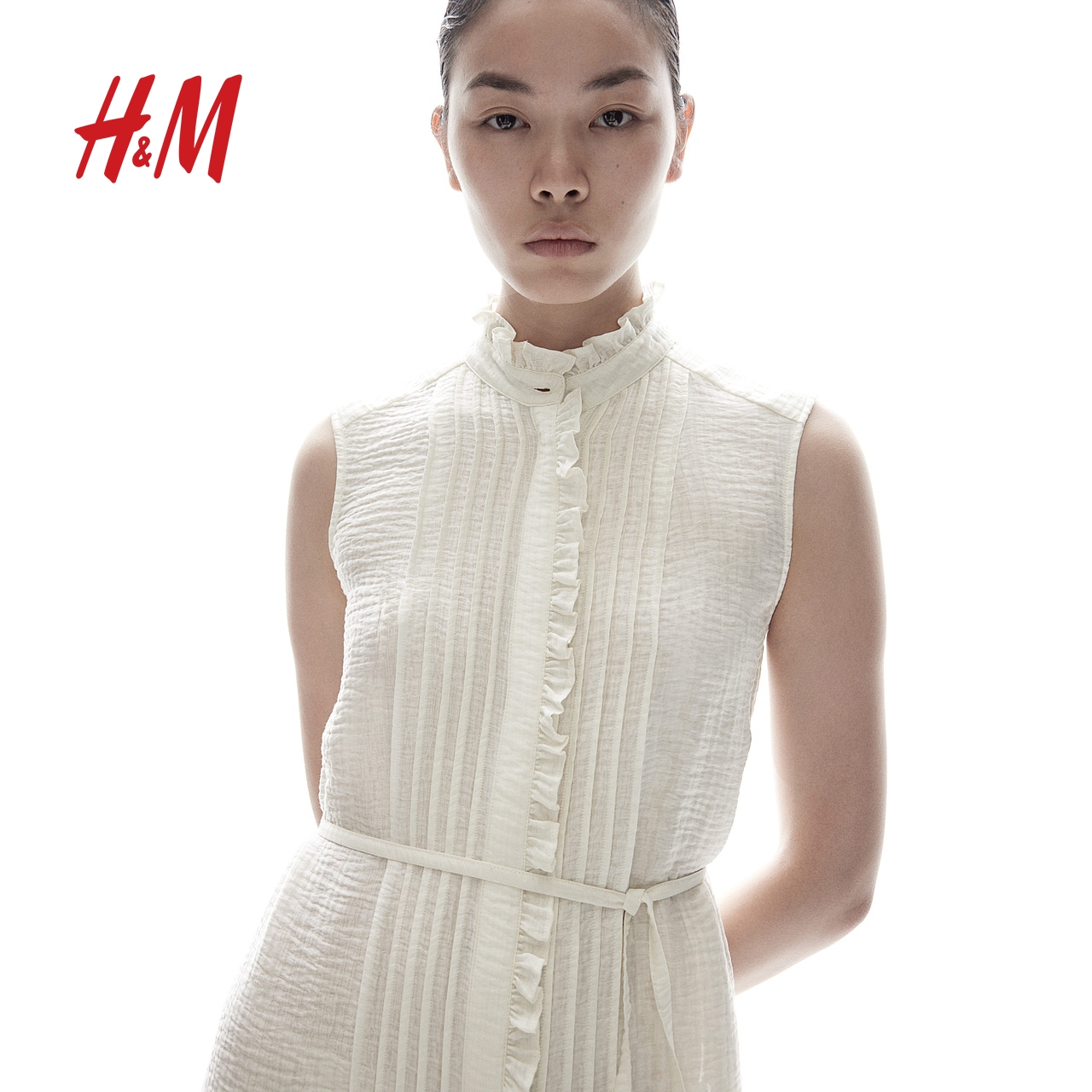 HM女装背心吊带连衣裙秋季舒适休闲简约褶边棉细布连身裙1236789