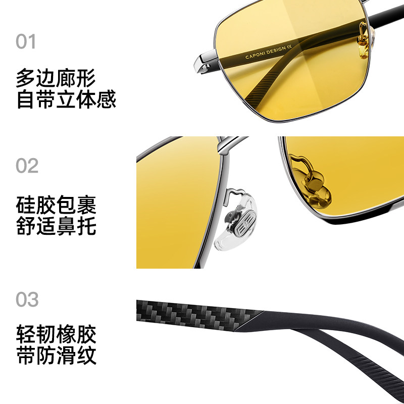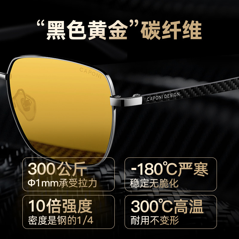 CAPONI夜视眼镜男碳纤维开车hud驾驶专用变色偏光墨镜日夜间两用