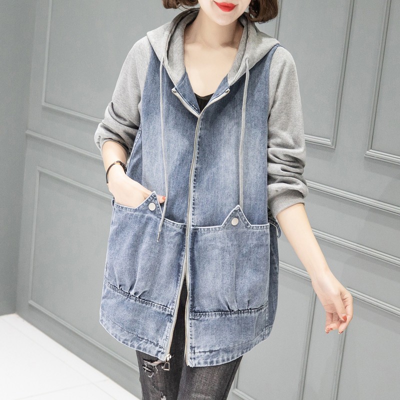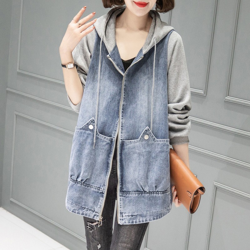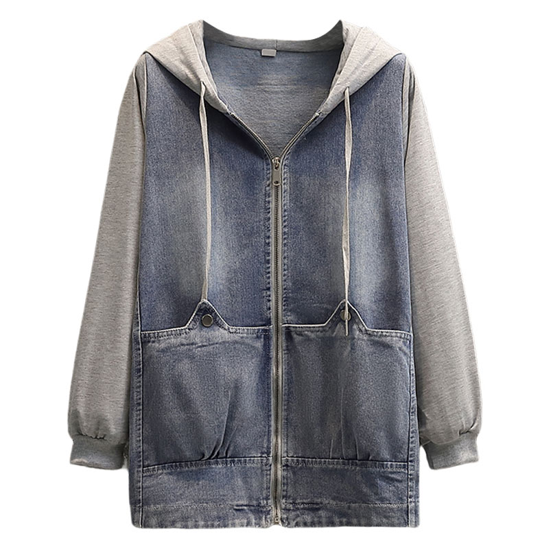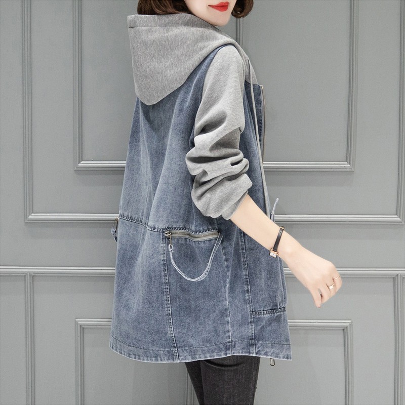 连帽牛仔外套女春秋季2025年新款时尚洋气宽松大码中长款休闲上衣
