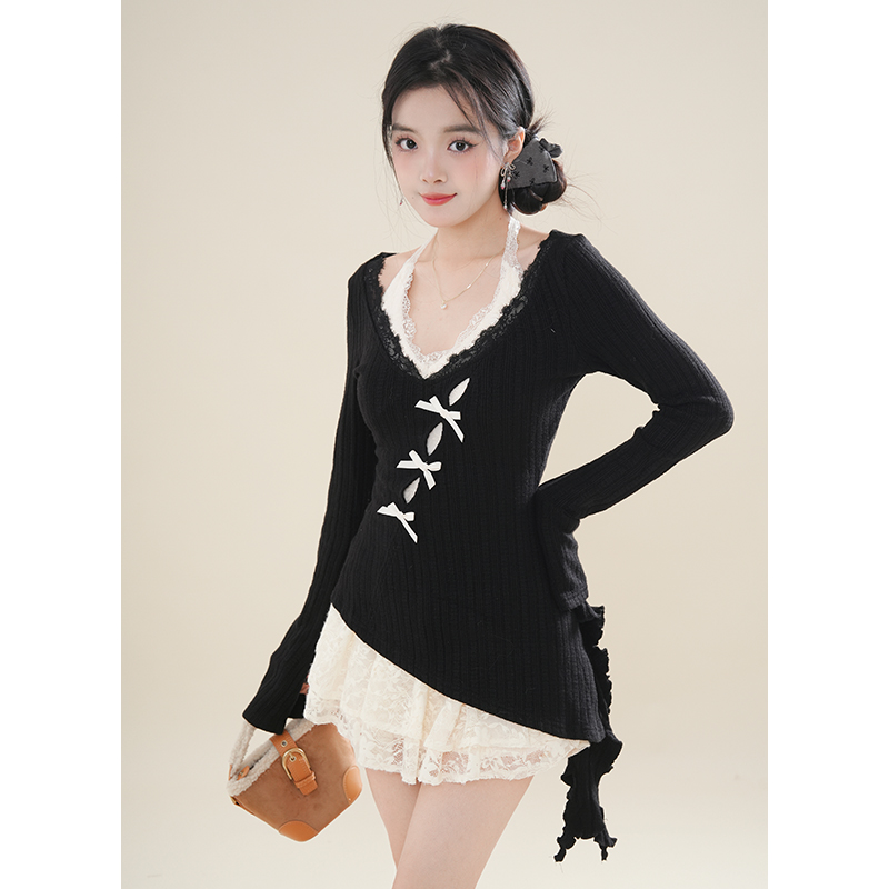 2025年秋冬纯欲风收腰显瘦针织罩衫蕾丝内搭连衣裙气质甜美两件套