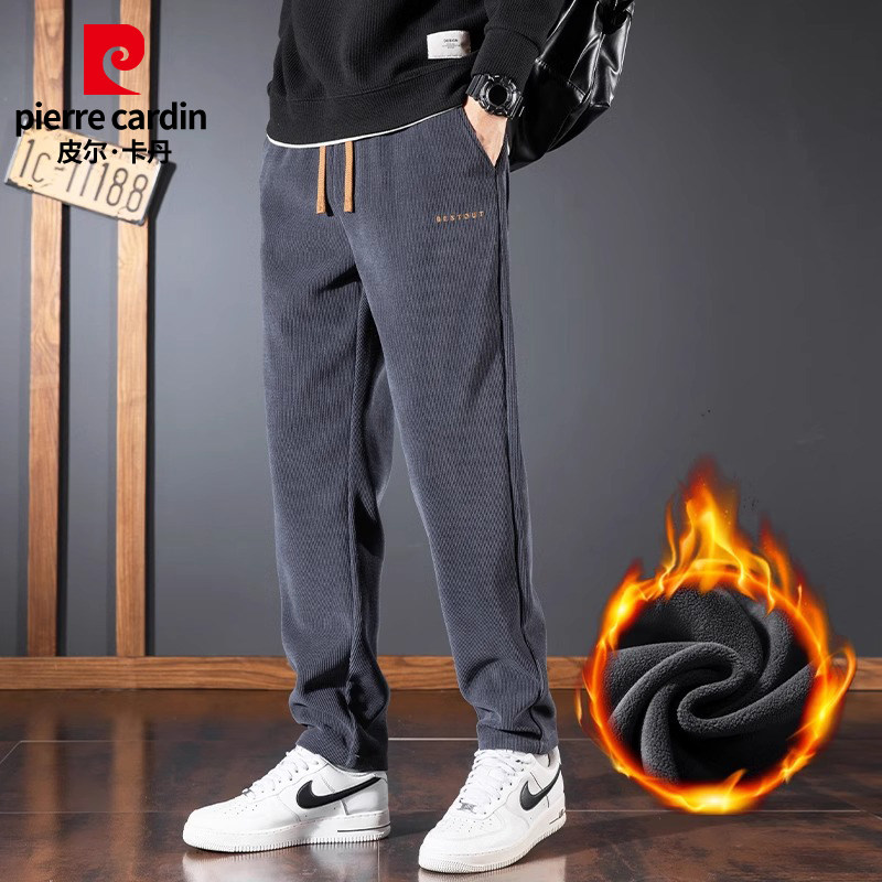 Pierre Cardin/皮尔卡丹灯芯绒休闲裤男冬季加绒加厚宽松直筒卫裤
