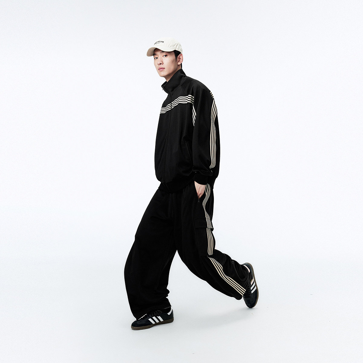 太平鸟男装运动套装2024春季新款休闲套装条杠经典时尚男士套装潮