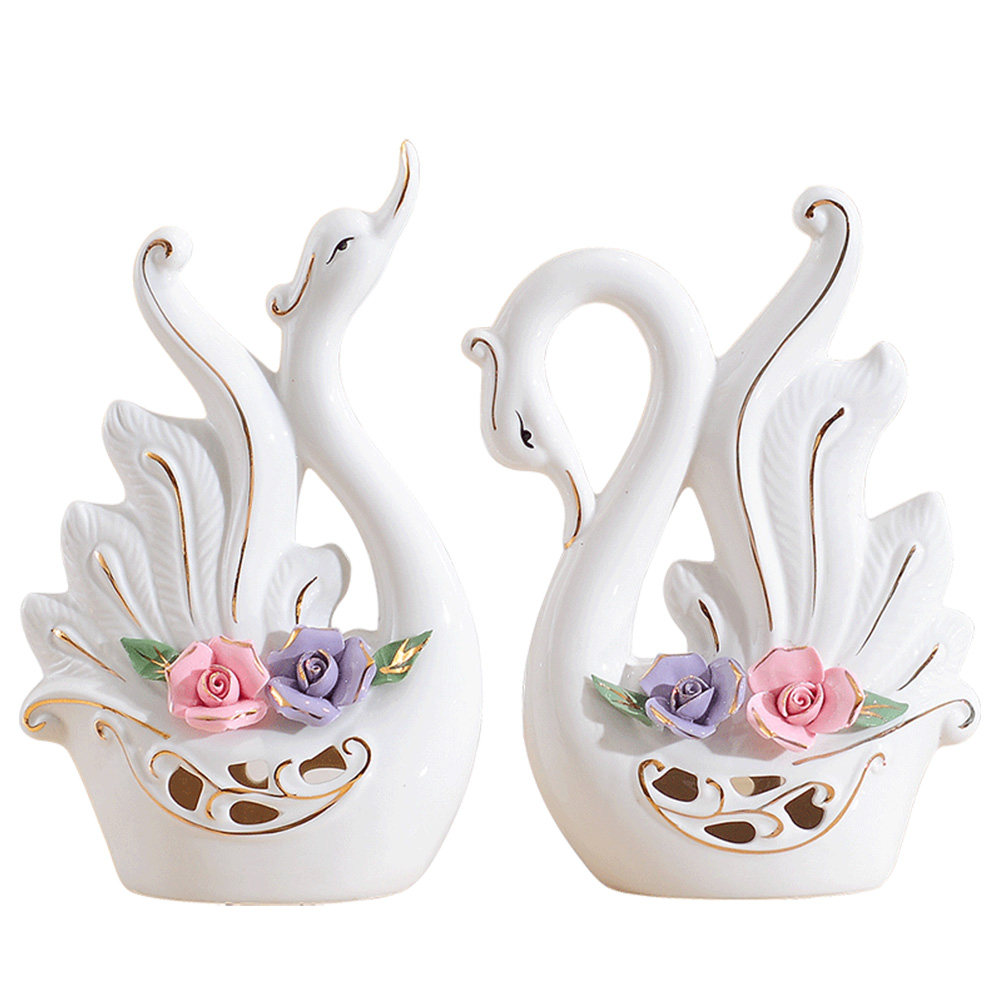 陶瓷哑光摆件天鹅花瓶花束家居装饰品艺术品客厅玄关电视柜送礼