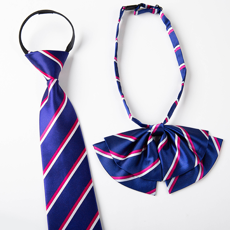 蓝底玫红条纹领带领花头花领结蝴蝶结男女款职业银行工装配饰