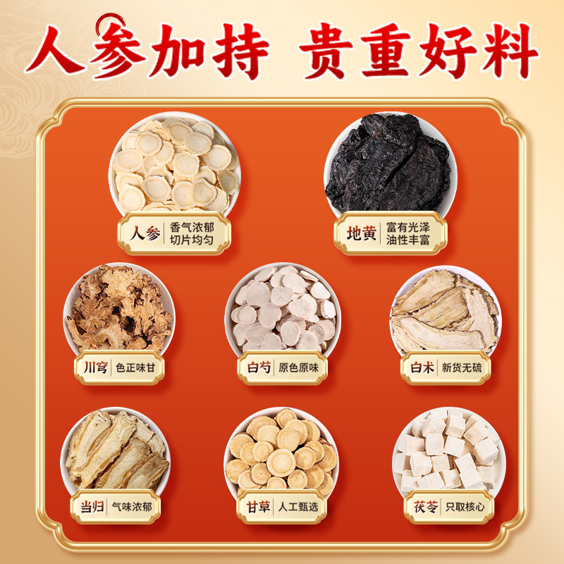 八珍汤补气养血气血双补搭四物汤中材药包女士茶官方旗舰店正品