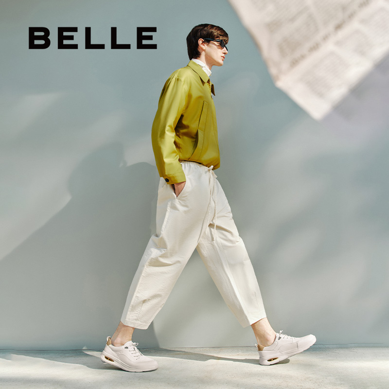百丽男鞋25春新健步男士厚底商务全皮小白板鞋休闲运动鞋8QM01AM5