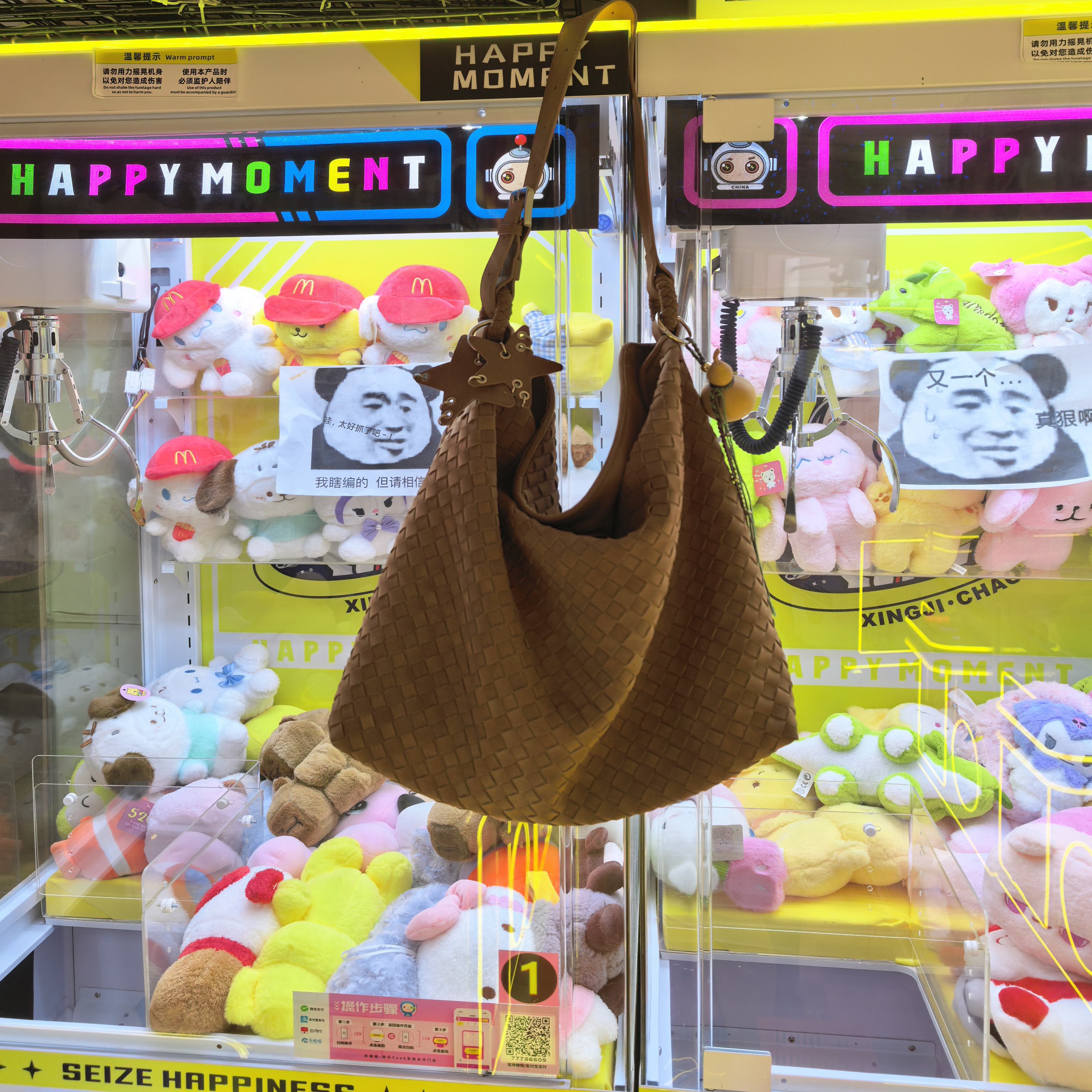 秋冬新款麂皮磨砂绒手工编织托特包大容量女百搭手提包单肩斜挎包
