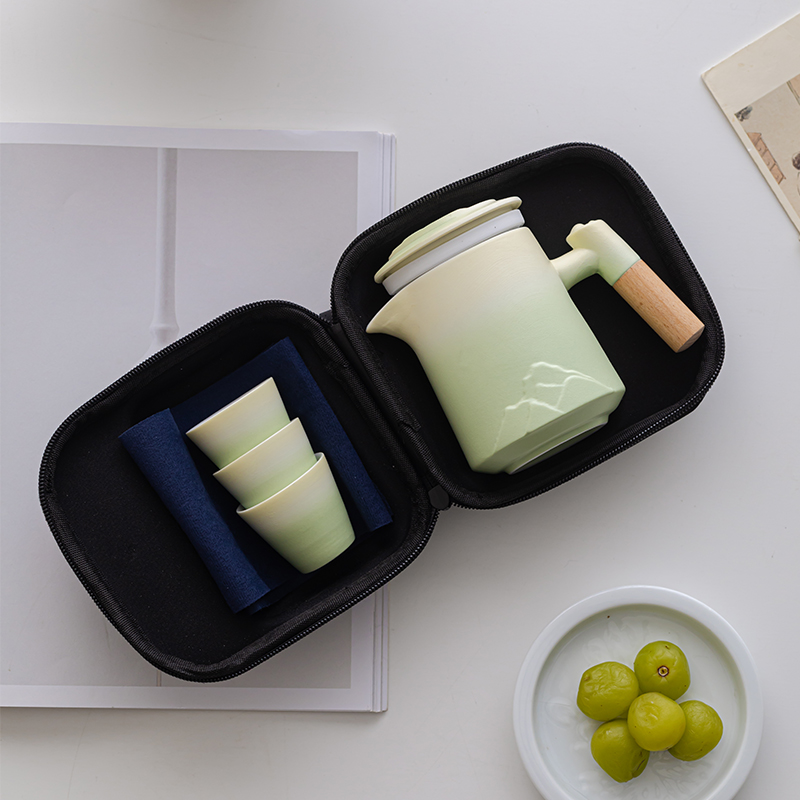 渐变色旅行茶具套装便携式快客杯一壶三杯陶瓷带过滤泡茶壶茶杯