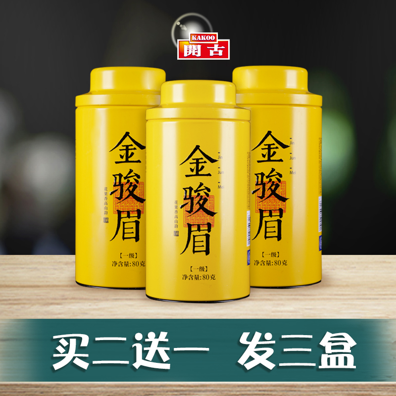 买2送1开古金骏眉红茶茶叶红茶金俊眉铁罐新茶自饮送礼长辈