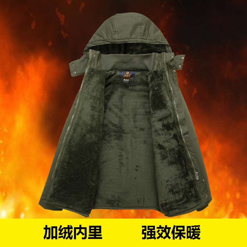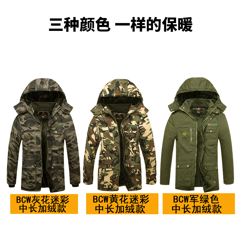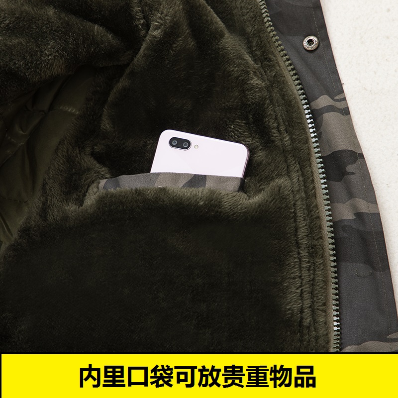 冬季加绒棉衣中长款棉袄迷彩棉服加厚工作服男士外套军棉大衣防寒