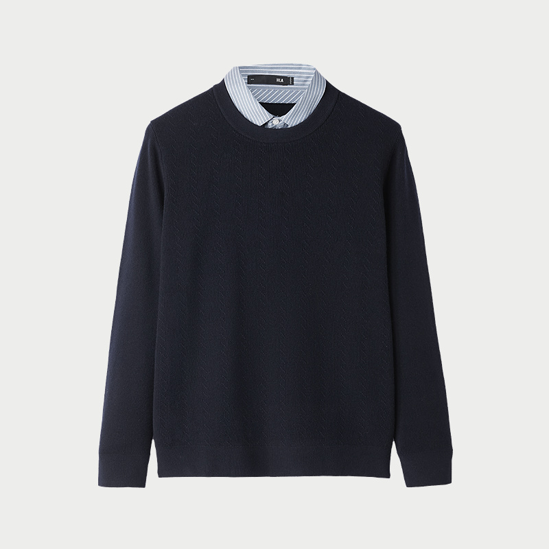 HLA/海澜之家轻商务时尚系列双领针织衫25秋新含羊毛假两件毛衣男