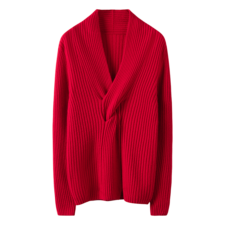 萨琪尼着迷女人味!扭转V领山羊绒衫女加厚纯羊绒毛衣针织打底衫