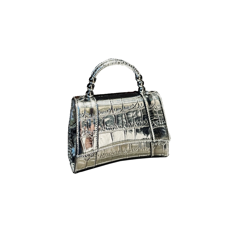 欧美牛皮小方包银色链条包2025新款时尚真皮女包潮流手提斜挎小包