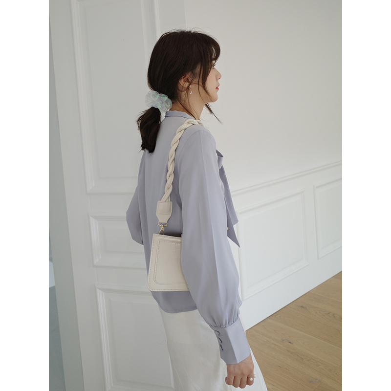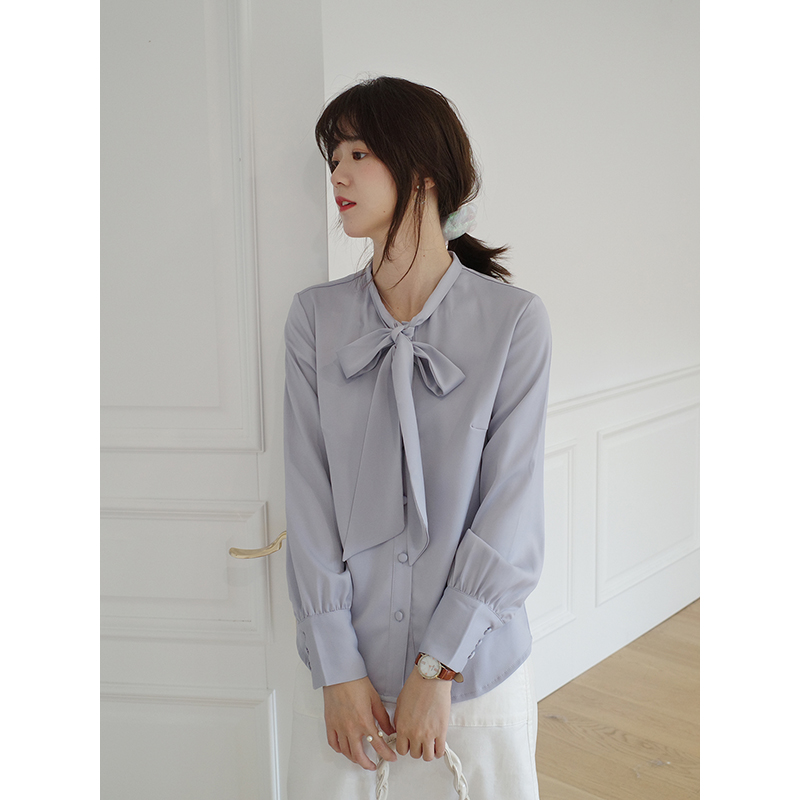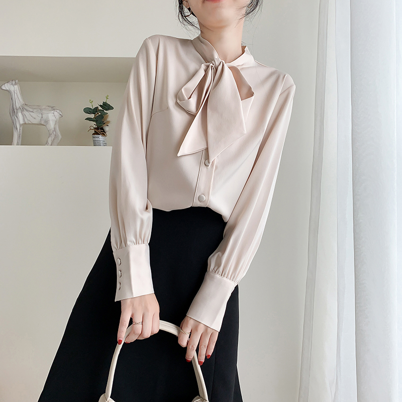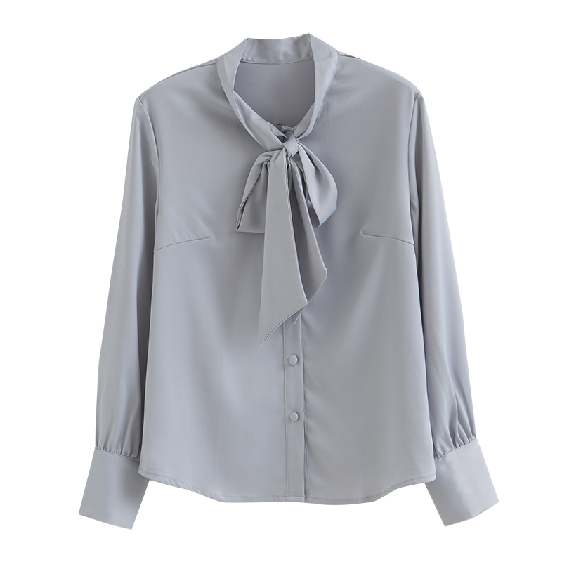 缎面飘带领衬衫女2024秋装新款通勤气质系带雪纺衬衣长袖打底上衣