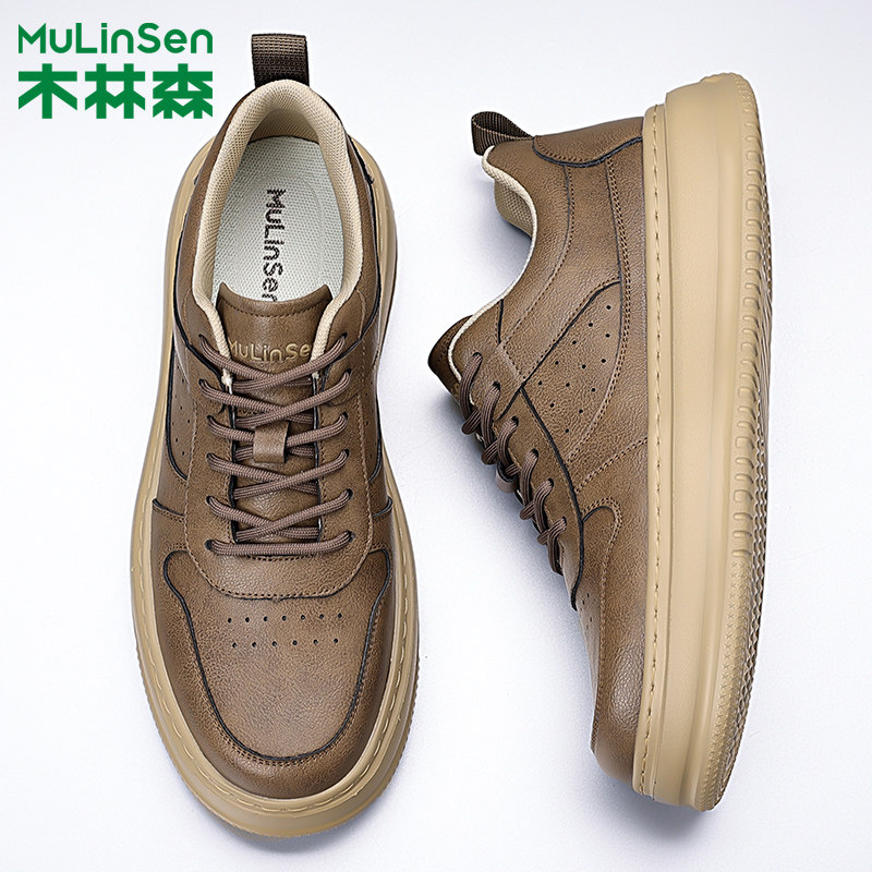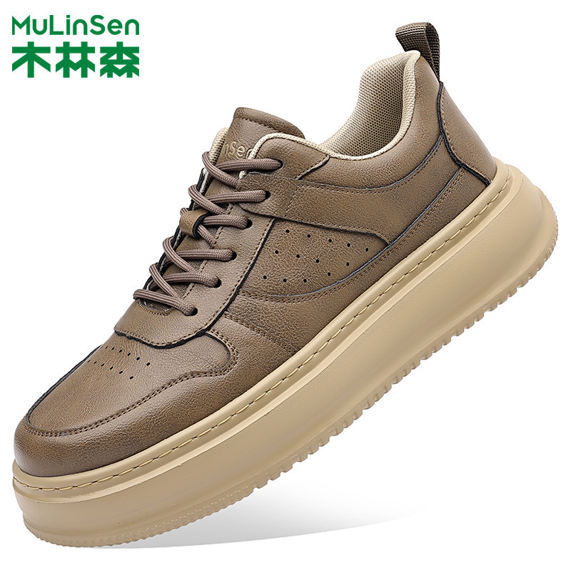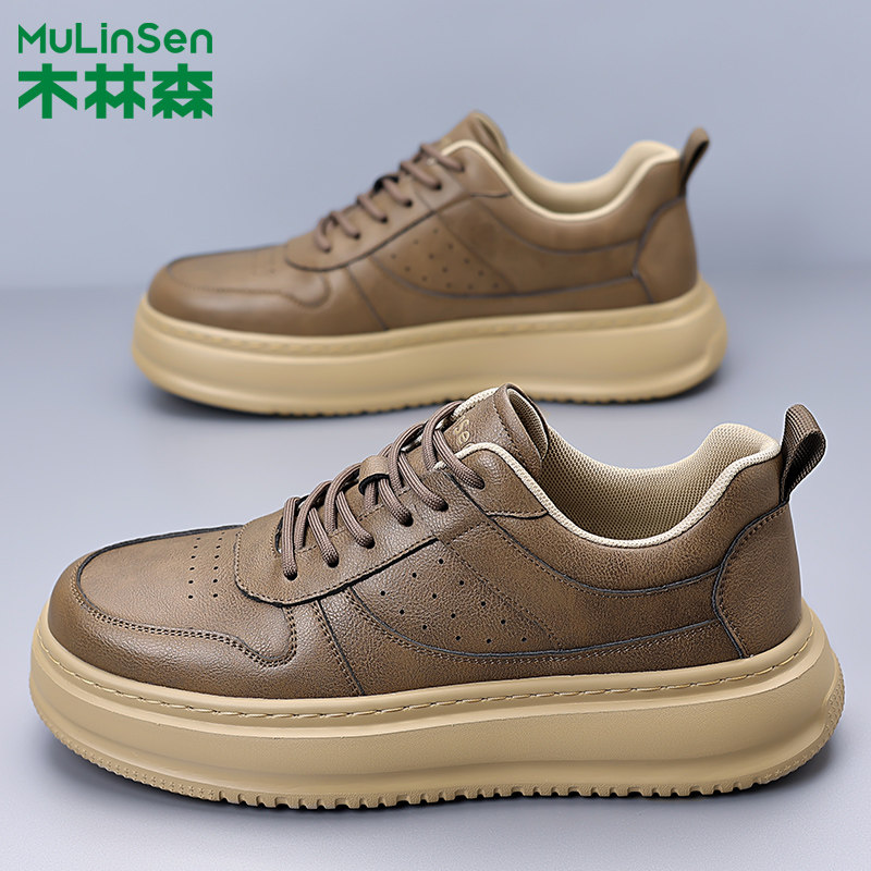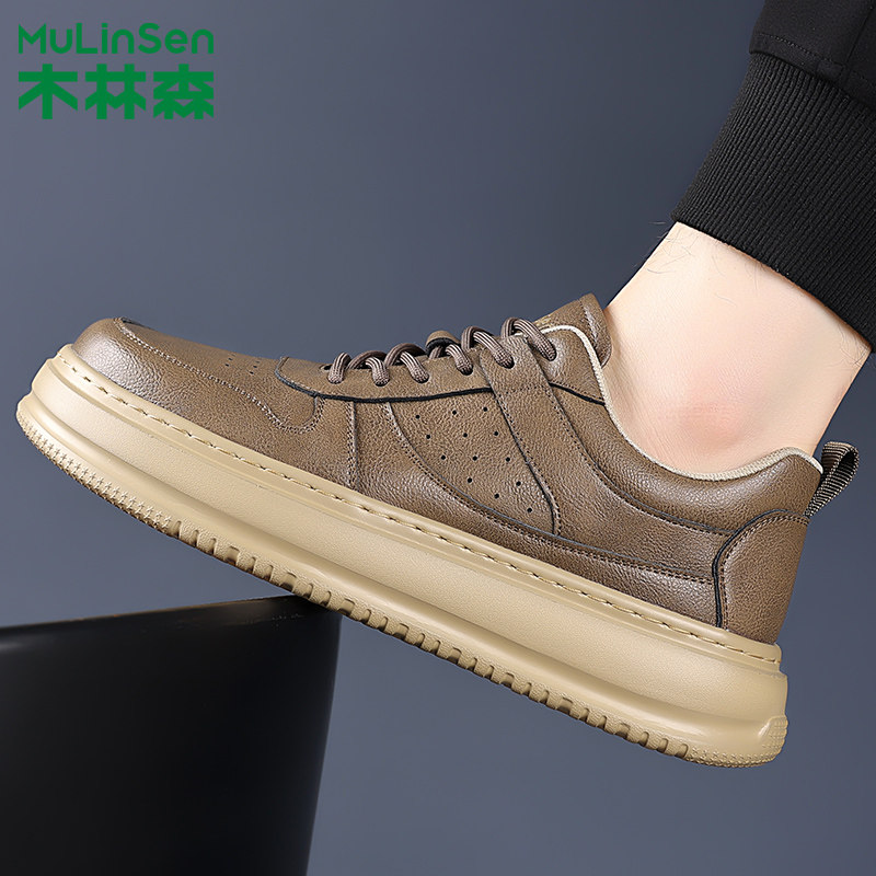 木林森男鞋2025冬季新款时尚百搭厚底休闲板鞋男鞋潮运动皮鞋男款