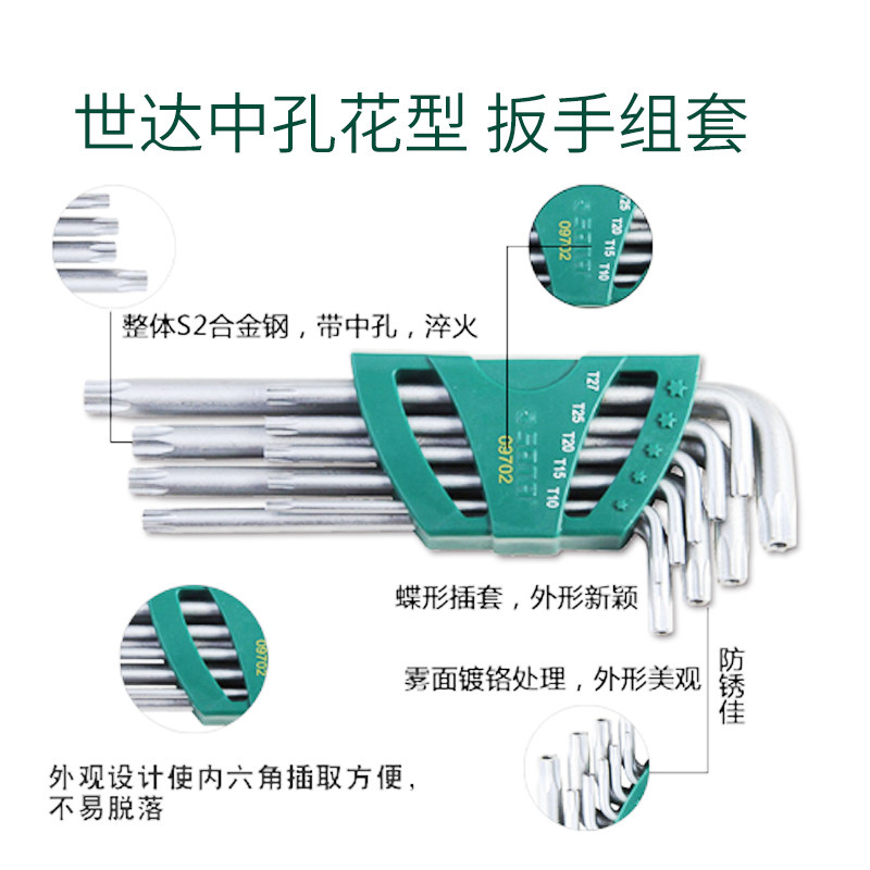 世达工具特加长中孔花形扳手组套7字L型梅花螺丝刀花件套装09702