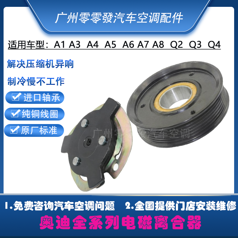 奥迪A1A3A4LA5A6LA7A8Q5Q6Q7空调压缩机离合器泵头皮带轮轴承吸盘