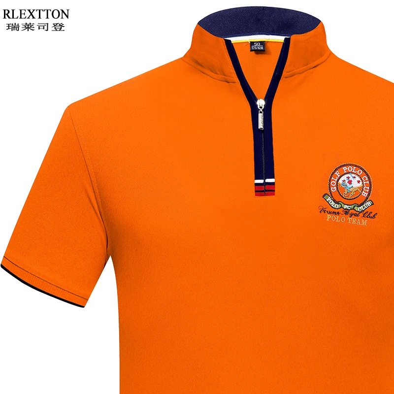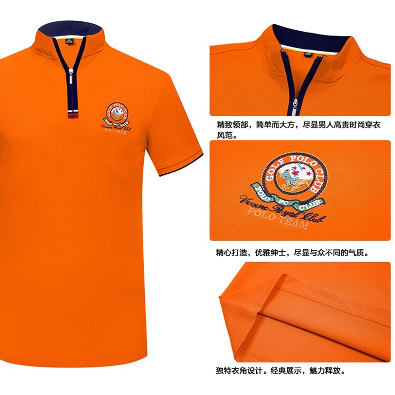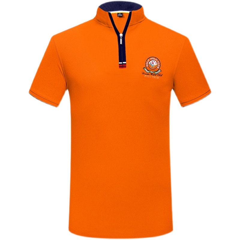 潮牌男士小立领短袖拉链t恤t丝光棉橙色男装拉链上衣服POLO衫夏季