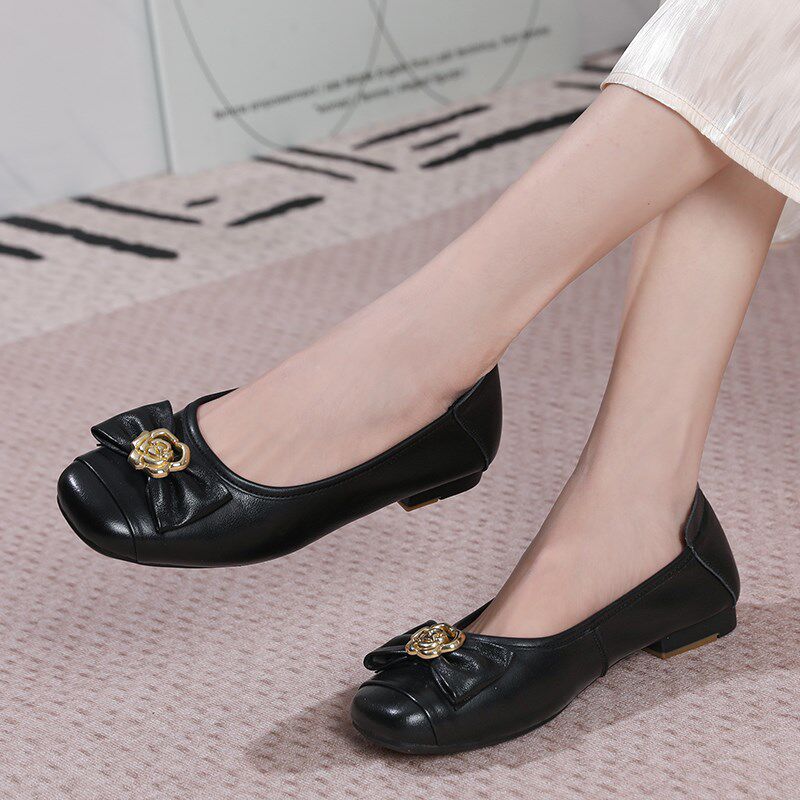 2025新款春夏季温柔浅口仙女软底真皮单鞋平底鞋女大码女鞋软皮鞋