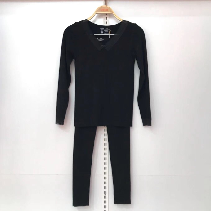 香蜜闺秀3305009美体粘棉罗纹蕾丝圆领套装无缝修身不臃肿秋衣